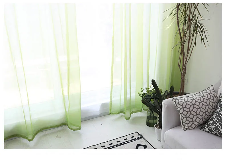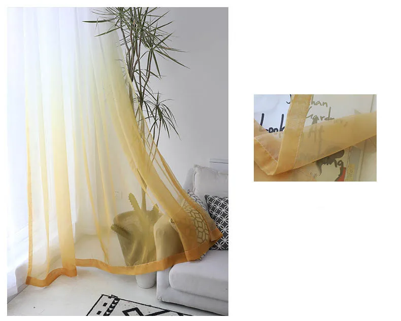 Тюлевые занавески разных цветов, градиентные занавески для гостиной, кухни, спальни, оконная отделка, прозрачная вуаль желтого, серого, зеленого цветов