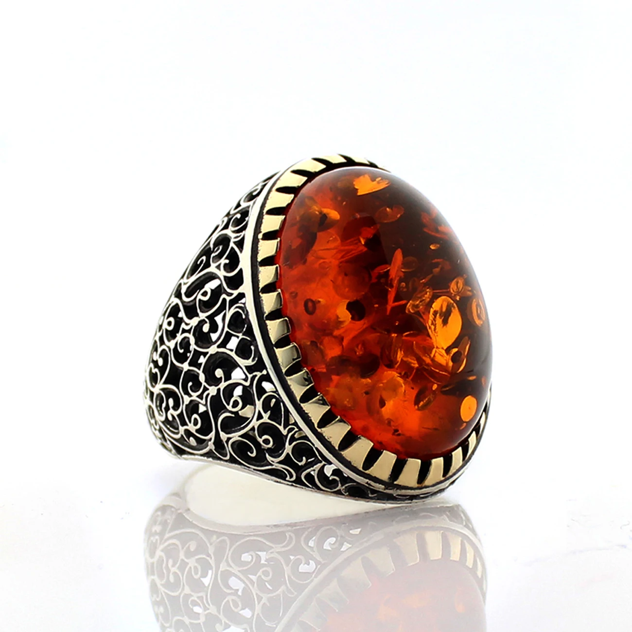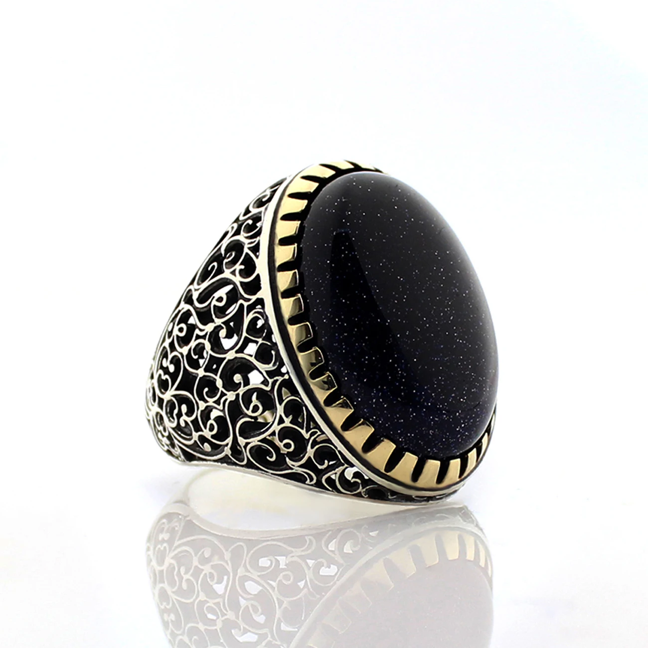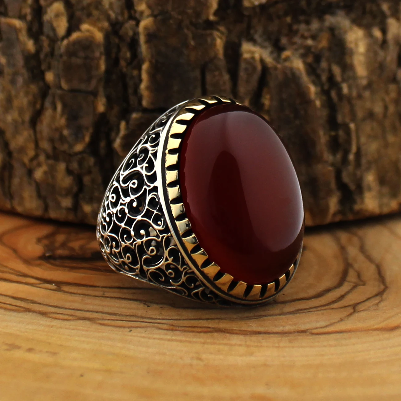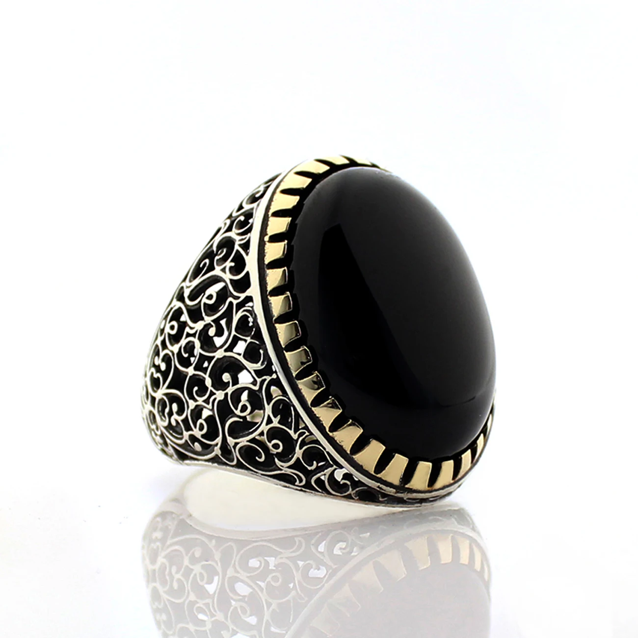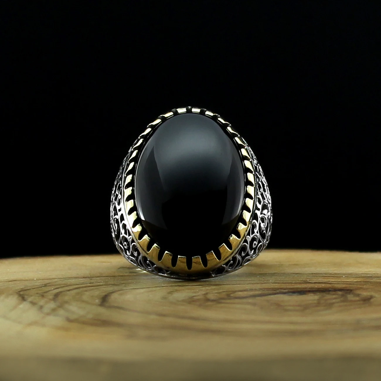 Турецкий Стиль Чистый Настоящий Стерлингового Серебра 925 Натуральный Камень Кольцо Для Мужчин Женщин Высококачественные Ювелирные Изделия Панк Ретро Мода Старинные Подарок Ручной Работы Циркон Оникс Агат Аксессуар