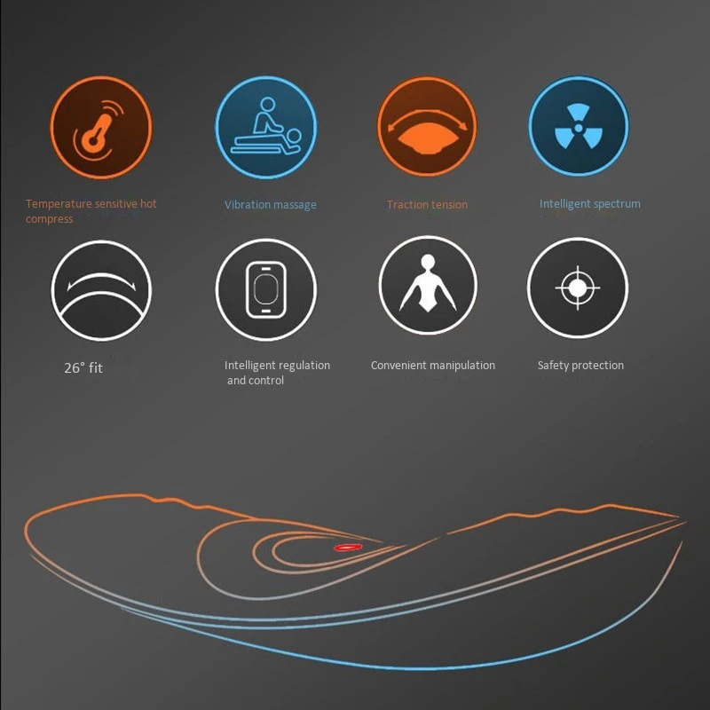 1. Интеллектуальная функция тяги, с использованием динамической возвратно-поступательной функции тяги, толкая Поясничный позвоночник вверх, тяги и Растягивание поясничных позвонков и мышц, снятие усталости поясничных мышц и уменьшение боли в пояснице и спине; 2. Два режима автоматической тяги, различные конструкции высоты тяги, пользователи выбирают режим, который им подходит. 3. Ручной режим тяги, пользователь может вручную регулировать высоту тяги в соответствии с его или ее уровнем комфорта, выбрать турнон или выключить функцию нагрева и функцию вибрационного массажа. 4. Вибрационный Массажный дизайн с обеих сторон талии, способствует циркуляции крови и снимает усталость мышц талии; 5. Технология инфракрасного нагрева, способствует циркуляции крови, уменьшает боль в пояснице и спине; 6. Эргономичный дизайн кривой, разумная поддержка талии;