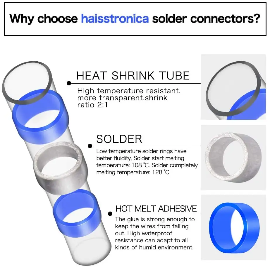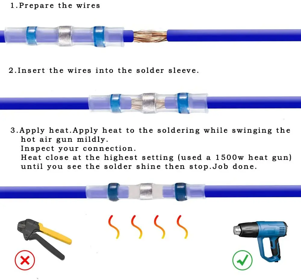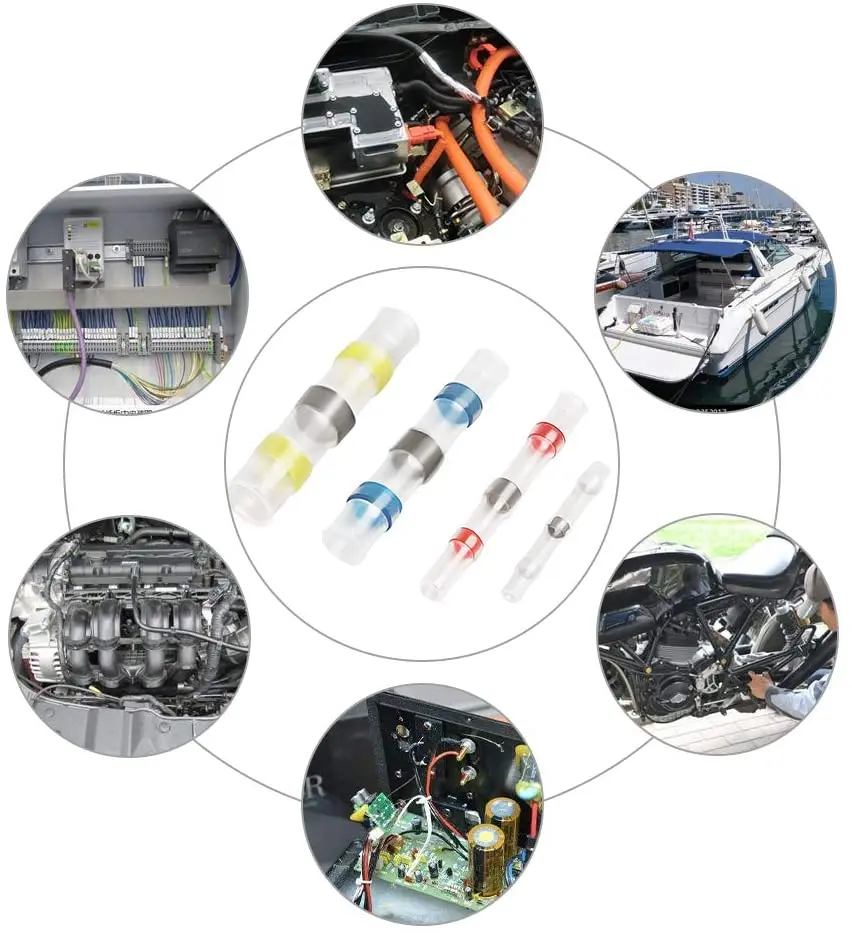 Независимо от того, работаете ли вы на лодке, транспортном средстве, доме или Научном проекте, наши Термоусадочные соединители для пайки и уплотнения обеспечат твёрдую пайку, повышенный поток тока и всепогодные соединения каждый раз ~ характеристики: ● Коэффициент усадки 2:1 ● простое одношаговое проводное соединение. ● Простая Идентификация: соединительная трубка с цветовой кодировкой. ● Полиолефиновые термоусадочные стыковые соединители повышают прочность на вырыв. ● Высококачественные соединители для проводов в уплотнении, снятии натяжения, проверке кабеля и изоляции. ● Расплавленный припой обеспечивает надежное соединение проводов и предотвращает выскальзывание проводов из клеммы. ● Соответствует всем соответствующим стандартам: ROHS, ISO 9001:2008, SGS и CE. Посылка ция: ● 1 термоусадочный набор Паяные соединители (четыре размера/цвета)