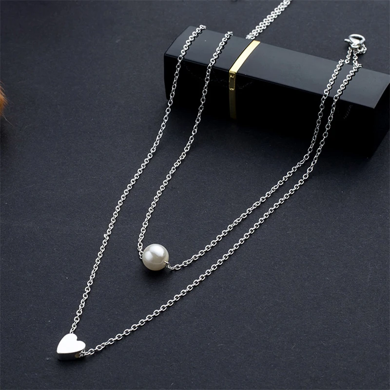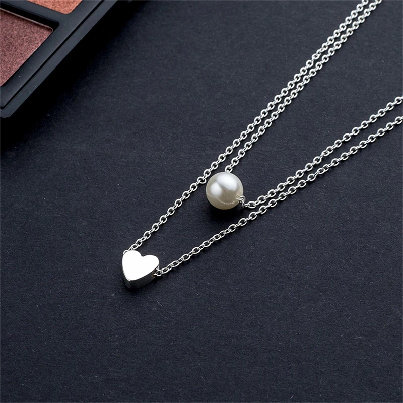 Богемное простое Двухслойное ожерелье-цепочка с имитацией жемчуга в форме сердца любви, многослойное ожерелье, подарок для женщин, золотосеребро