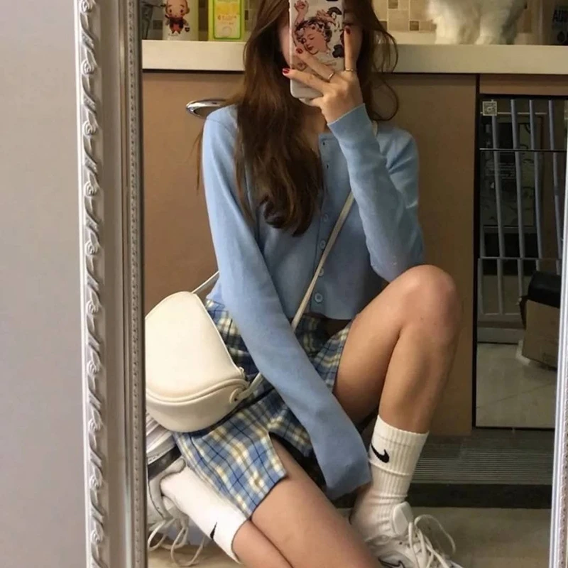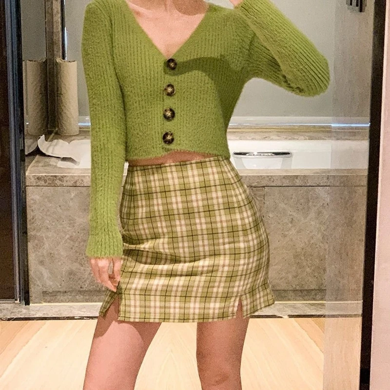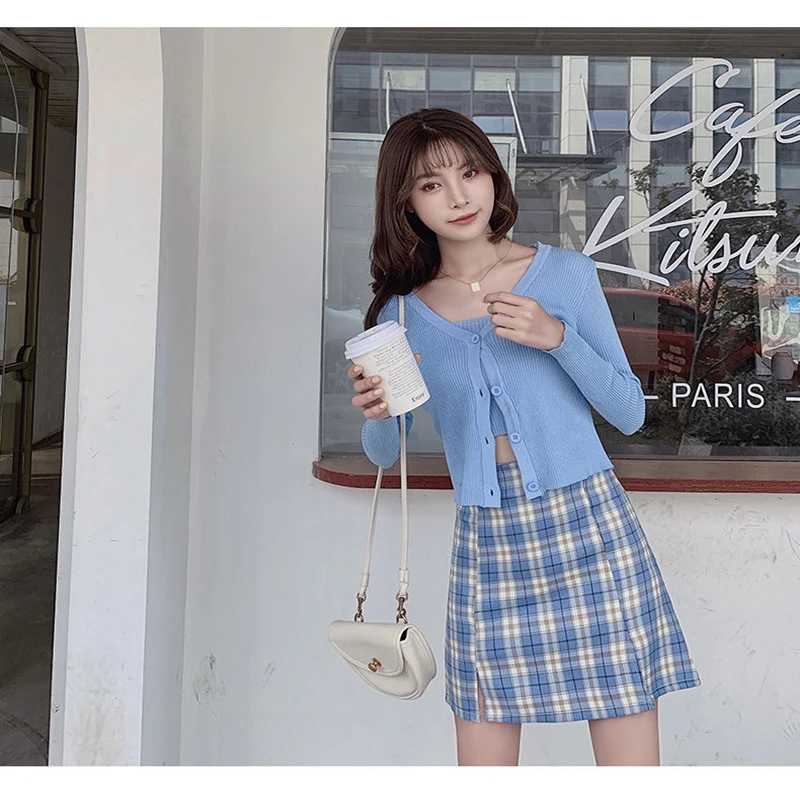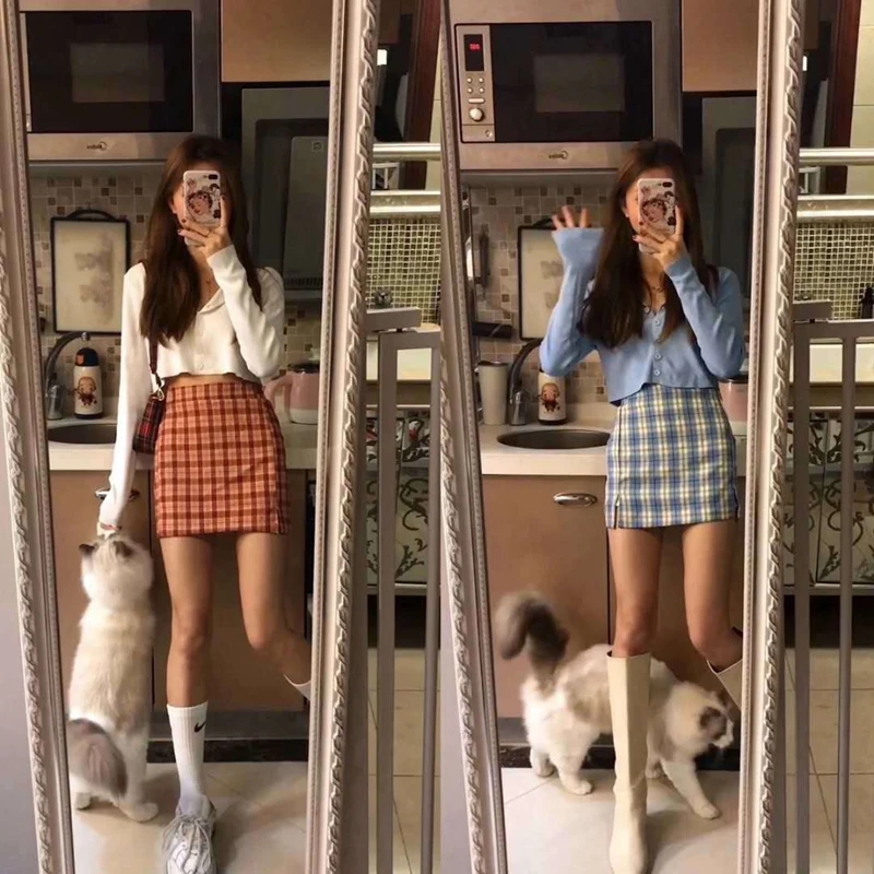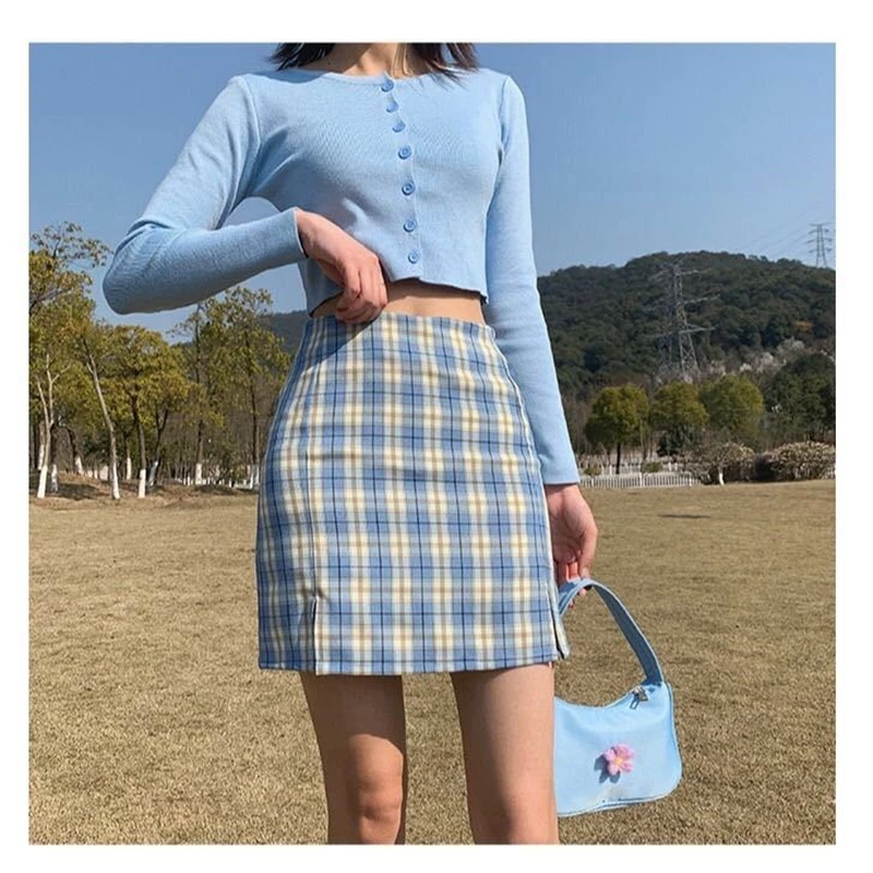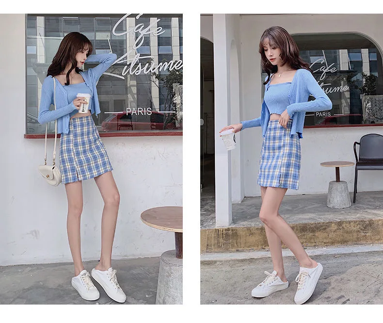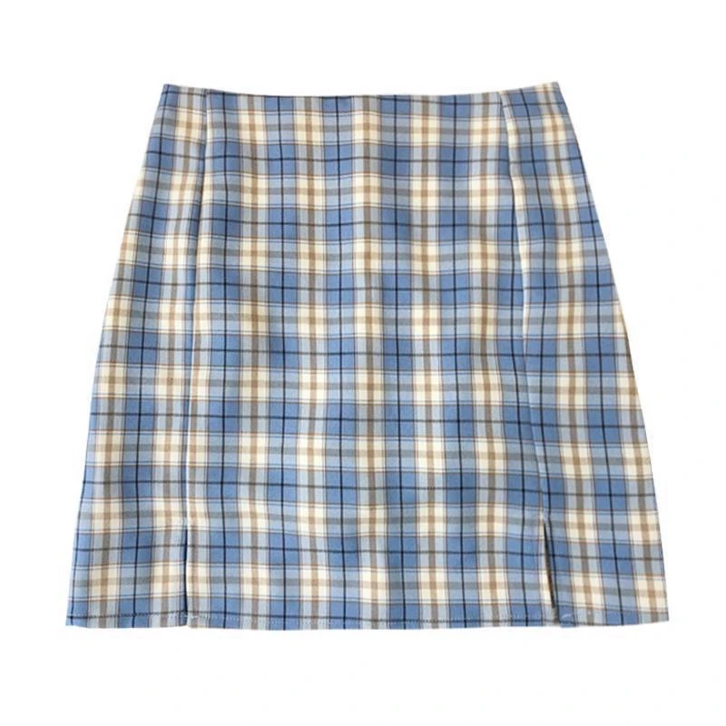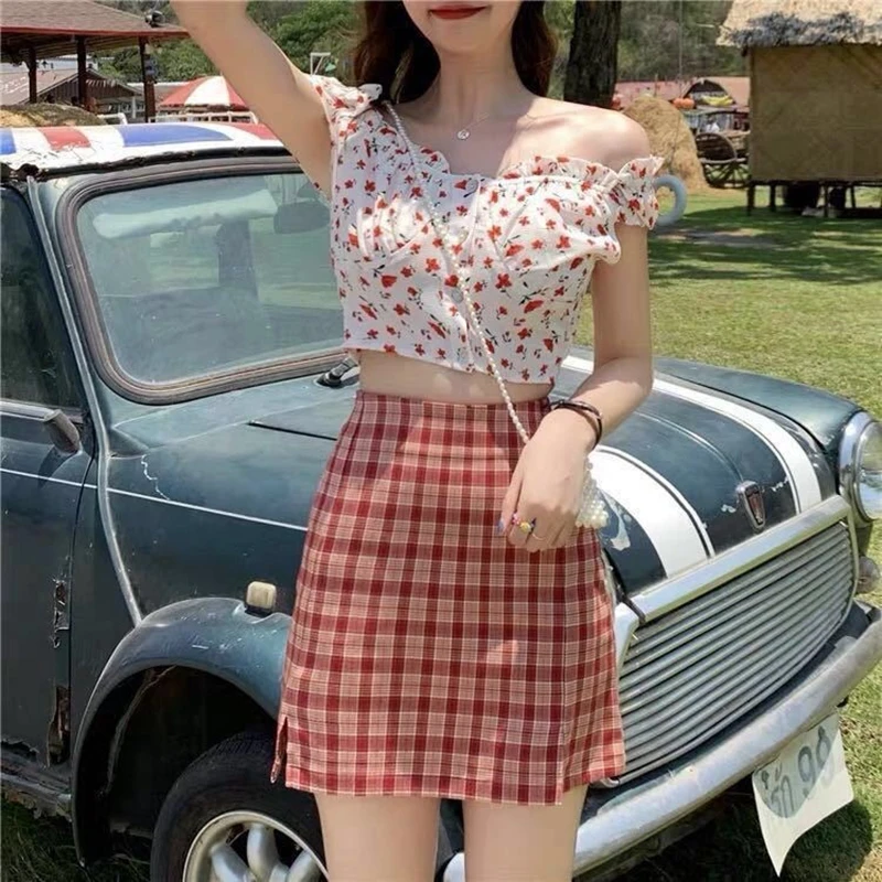 Женская модная хлопковая клетчатая облегающая юбка в стиле Харадзюку, летняя шикарная мини-юбка с разрезом и высокой талией в европейском стиле