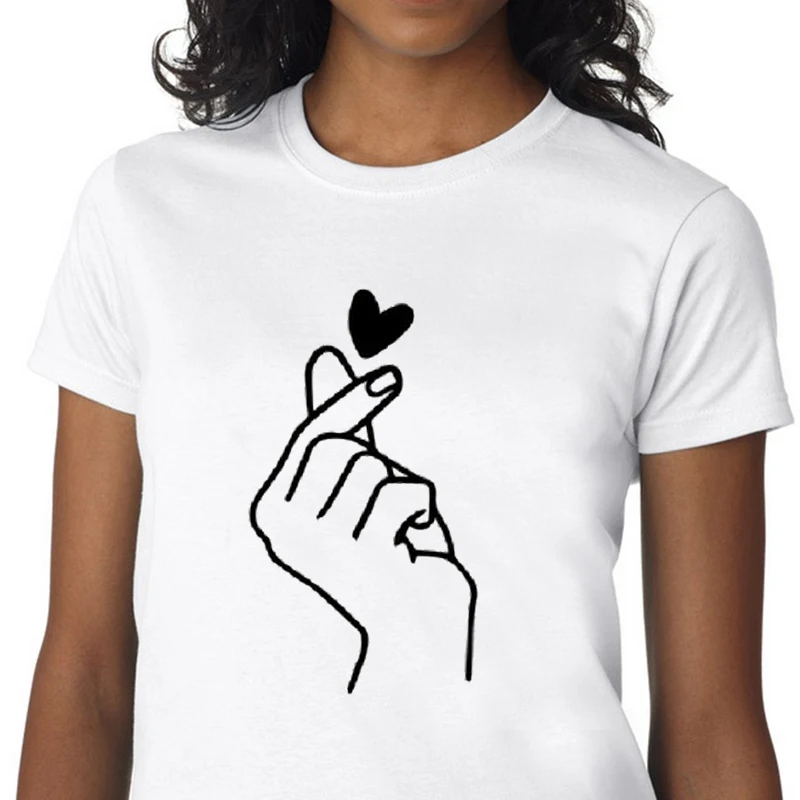 Летние женские топы в Корейском стиле, футболки с короткими рукавами и принтом палец, чем сердце, модные футболки в стиле Харадзюку, одежда для пары