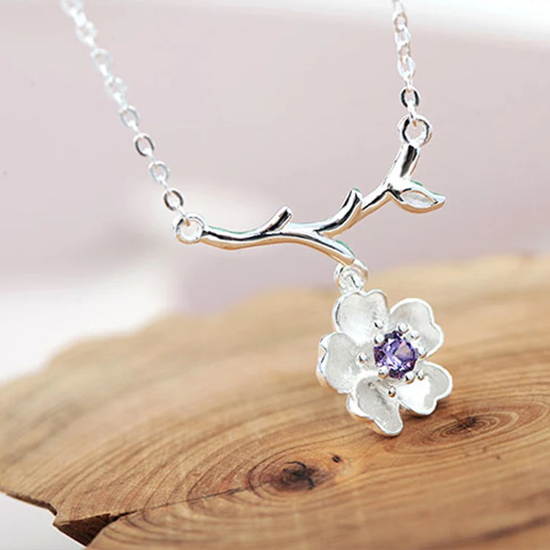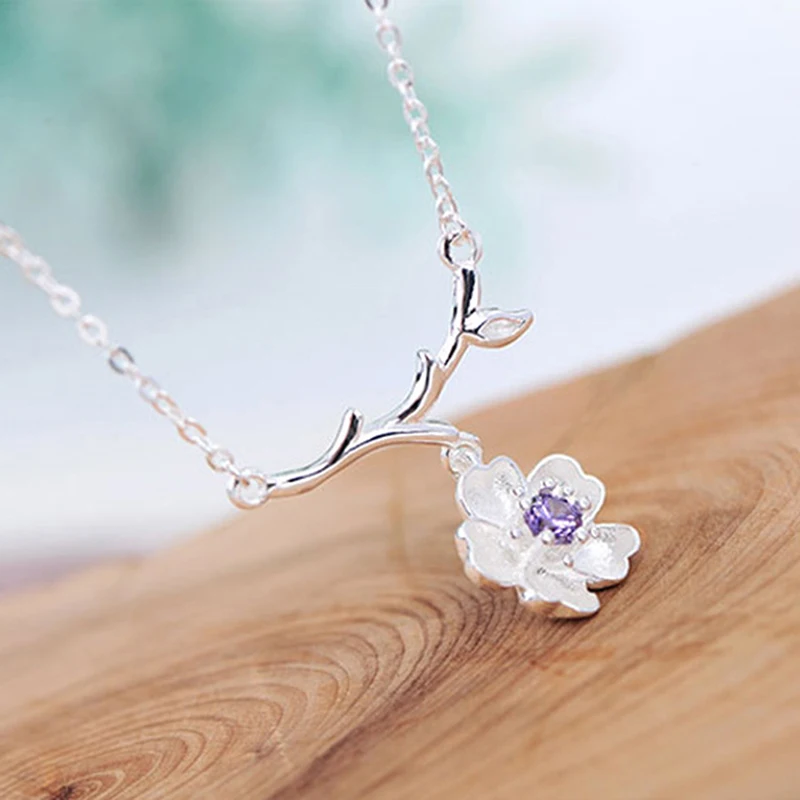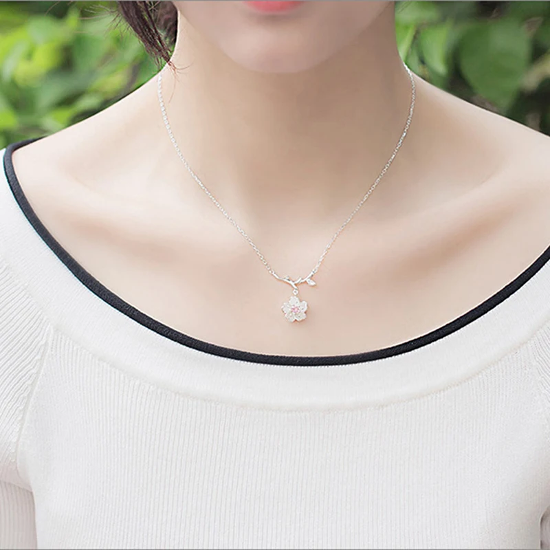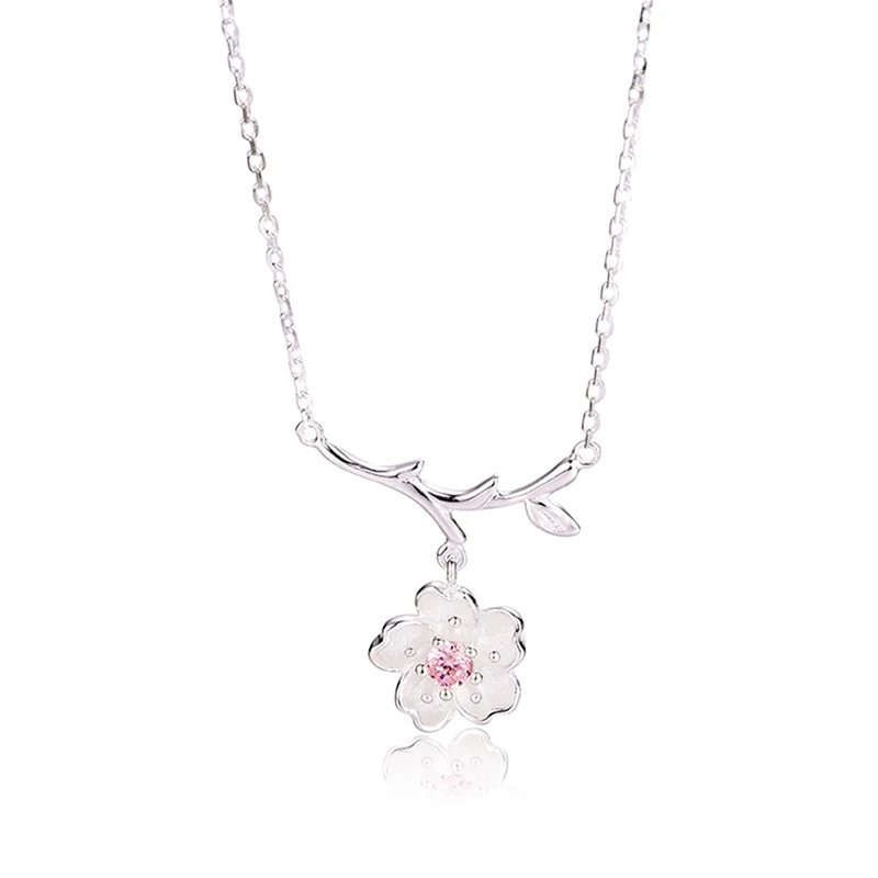 Серебряное ожерелье с цветком Сакуры и подвески с цветком вишни и цепочкой, колье, ожерелье, ювелирное изделие, ошейник
