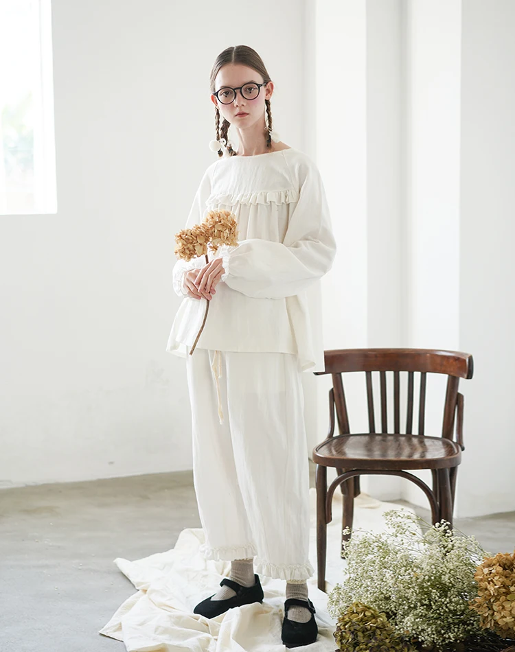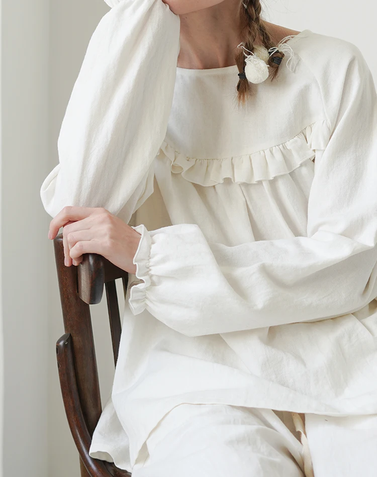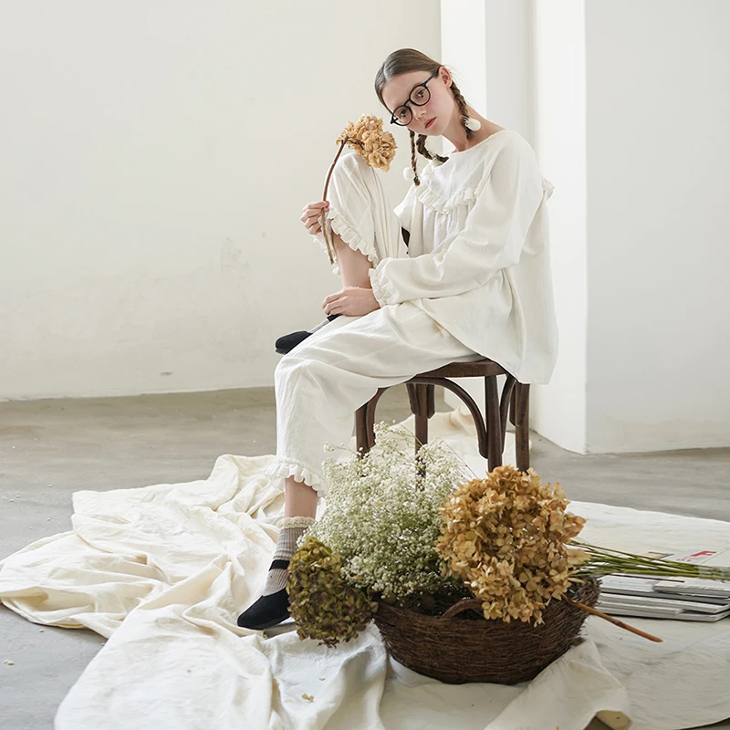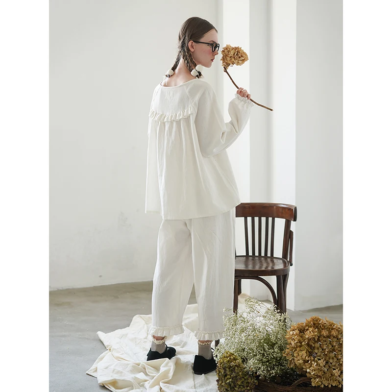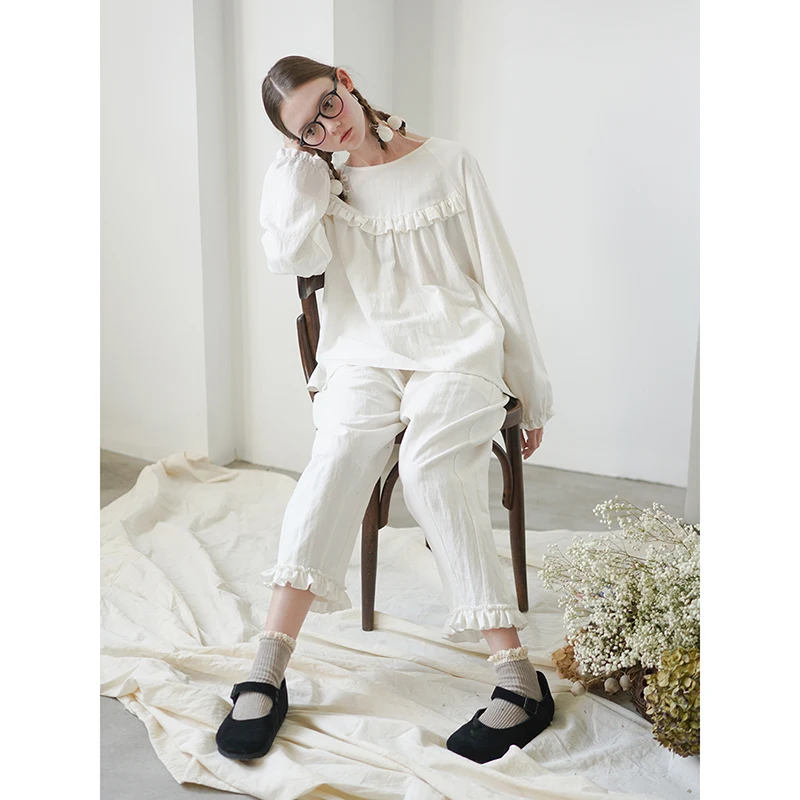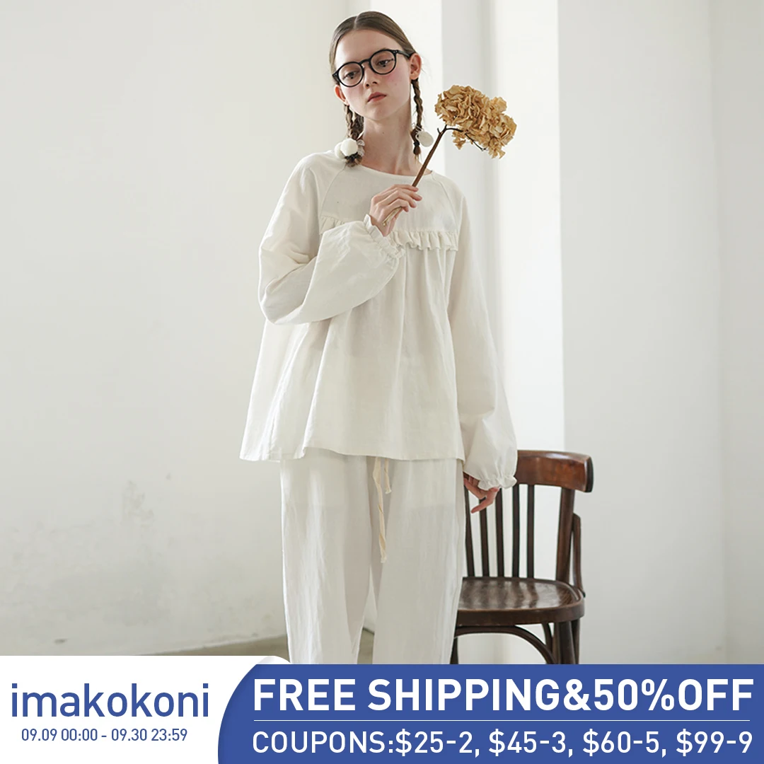 Пижама imakokoni женская из двух предметов, тонкая пижама с длинным рукавом, оригинальный дизайн, белый, для дома, весна-лето 192576