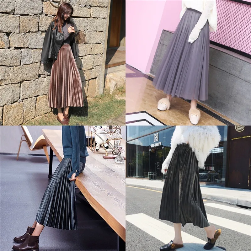 RuiLee шикарная офисная элегантная женская длинная Серебристая плиссированная юбка макси миди с высокой талией, Повседневные Вечерние юбки Elascity