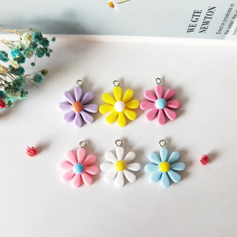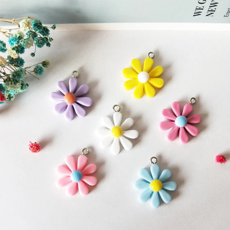 20 шт./лот красочные смолы маргаритки шармы хризантемы солнечные цветы Подвески для ювелирных изделий DIY аксессуары серьги браслет плавающий