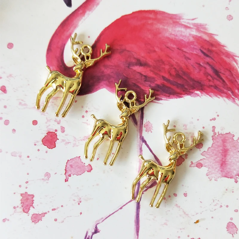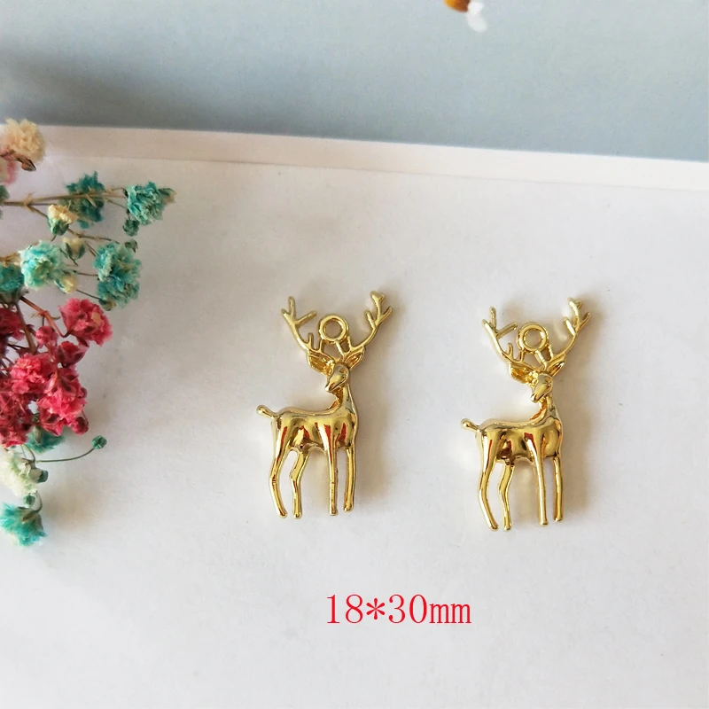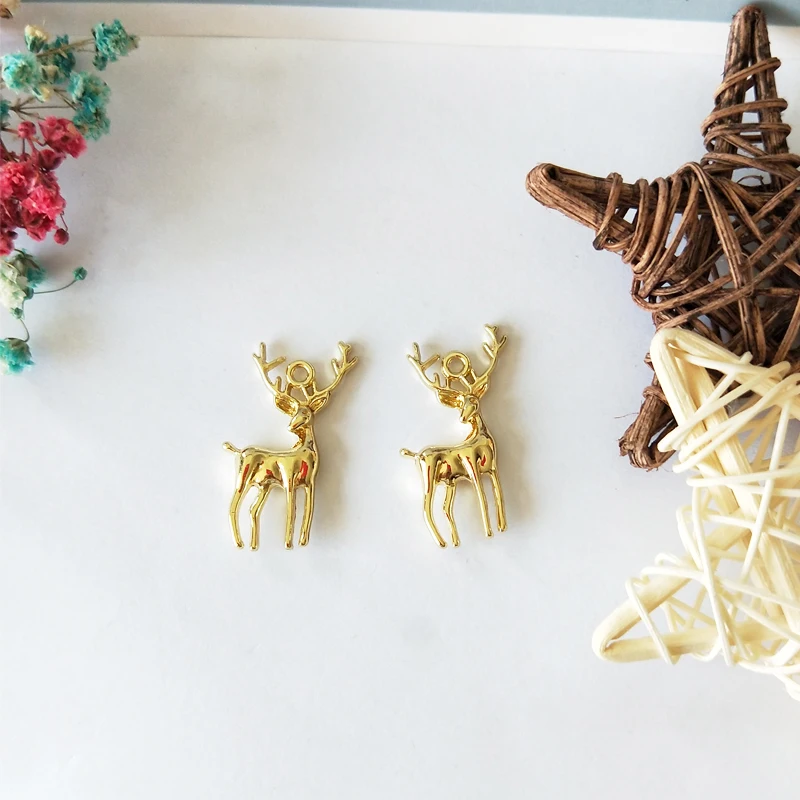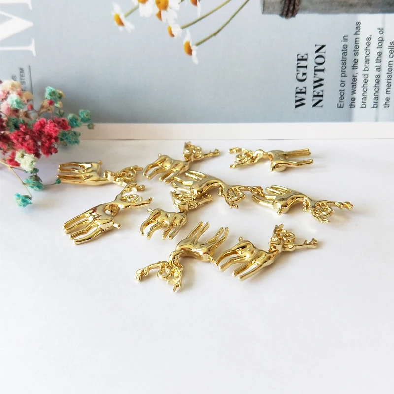 Бижутерия в виде лося, подвески золотого цвета в форме оленя, подвески из сплава, подвески в виде животных, браслет, ожерелье, изделия ручной работы, подарок на Рождество, 10 штук
