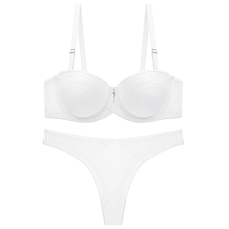 Комплект нижнего белья Julexy Женский, кружевной бюстгальтер с чашками B C и трусики, пикантный однотонный, стринги, пуш-ап, 2020
