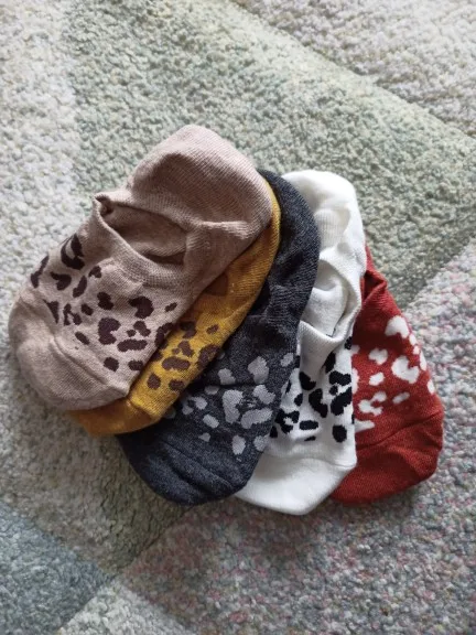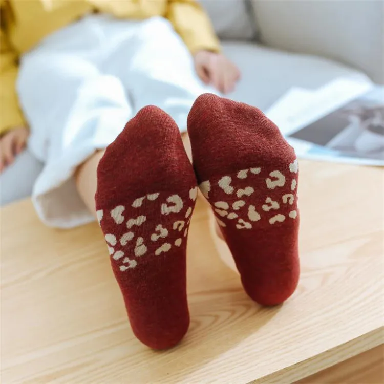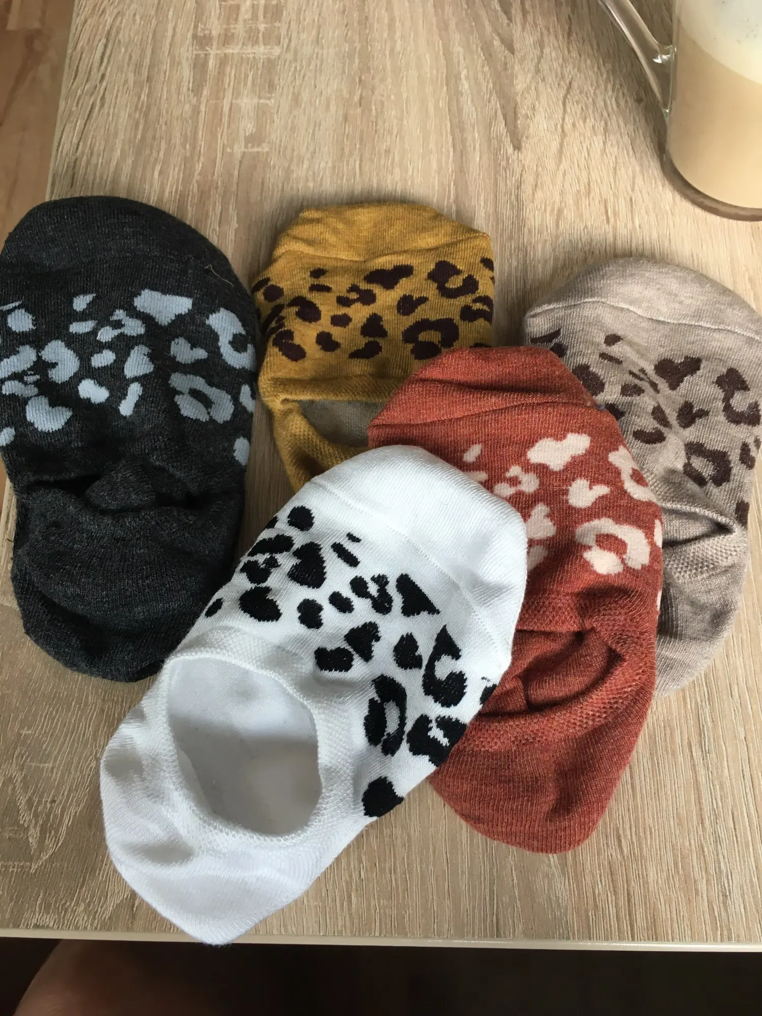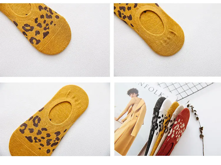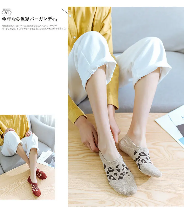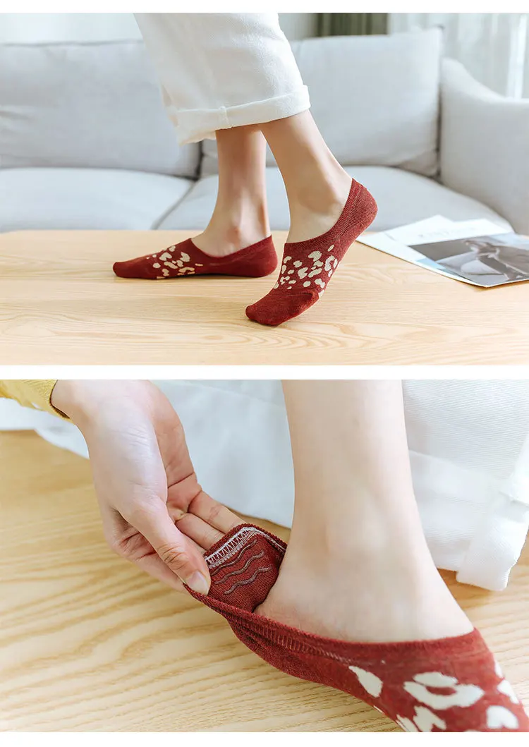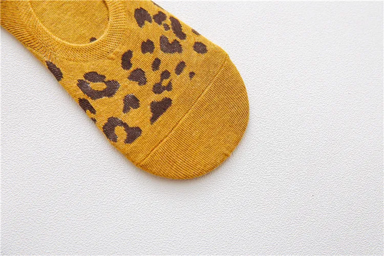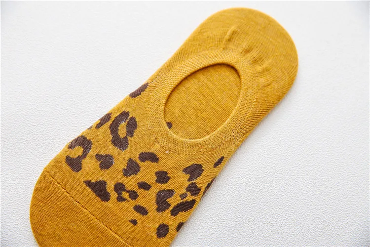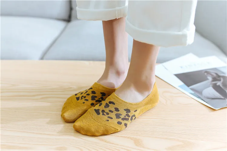 5 пар, женские хлопковые невидимые Нескользящие силиконовые носки-тапочки с леопардовым принтом
