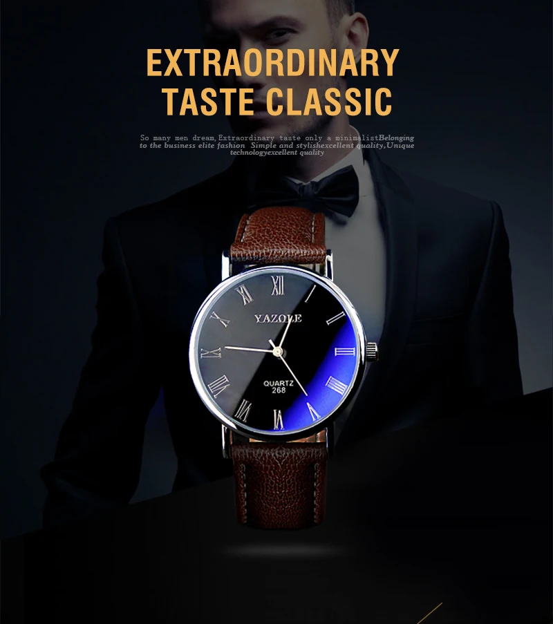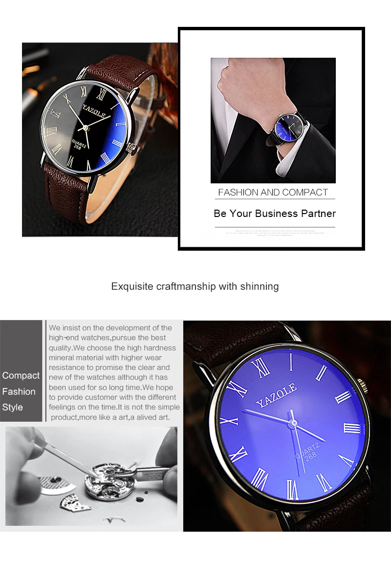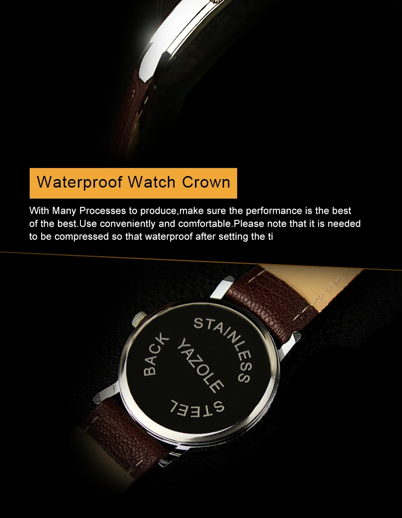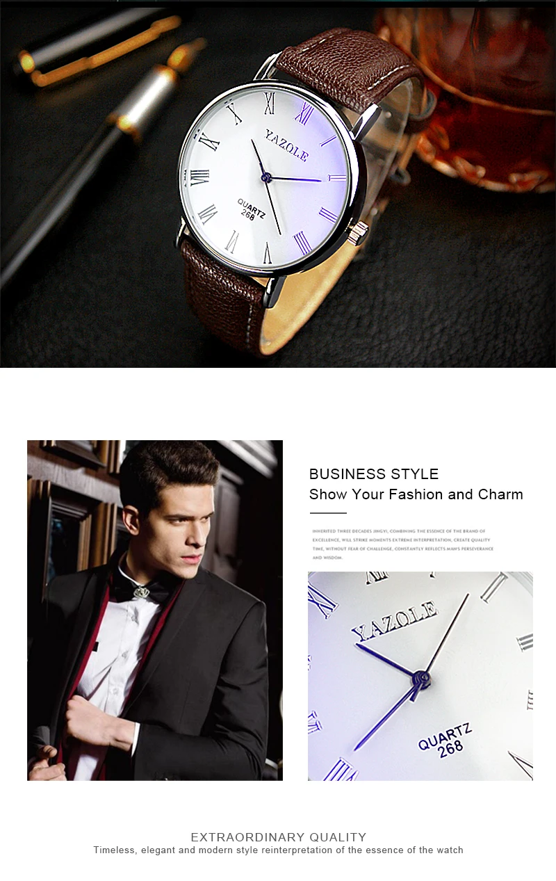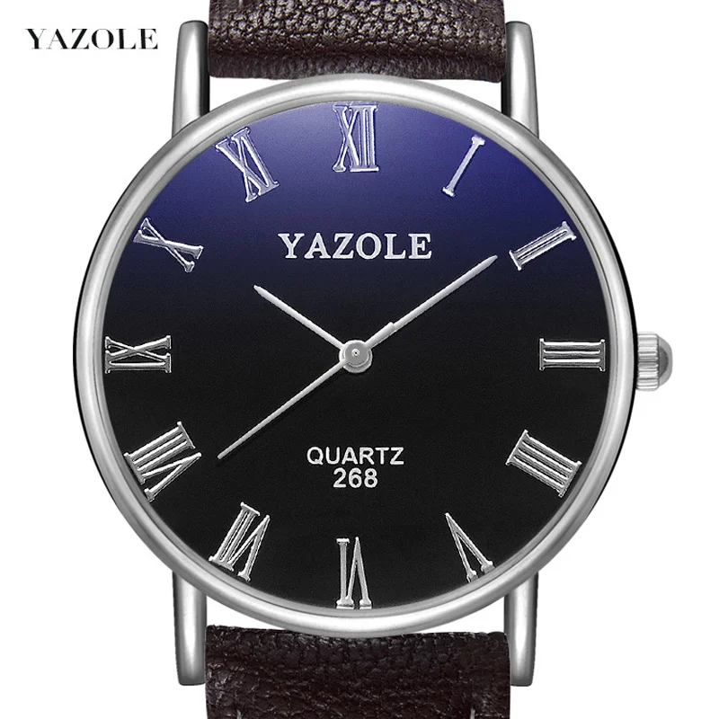 Yazole Брендовые Часы мужские модные повседневные с кожаным ремешко...