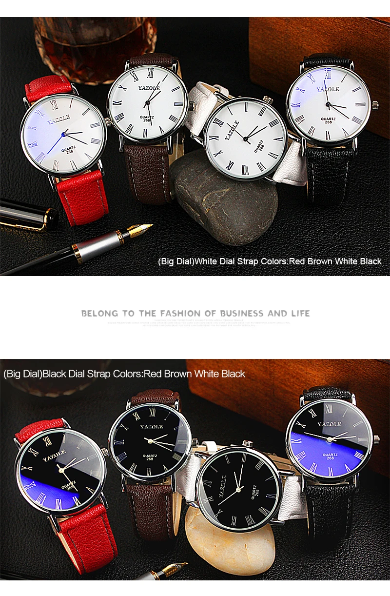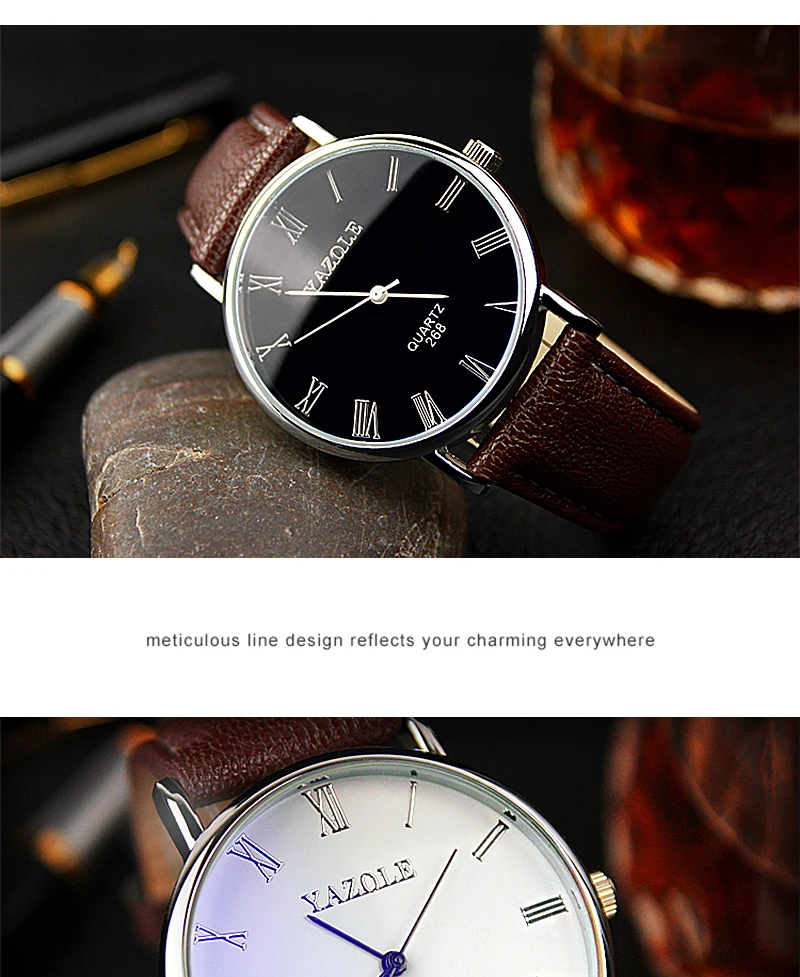 Новинка 2021, Стильные кварцевые часы YAZOLE, кожаный ремешок, роск...