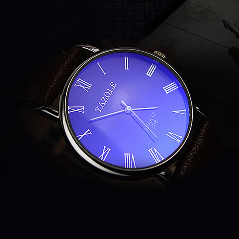 Часы YAZOLE Мужские кварцевые с хронографом, модные роскошные светильник повседневные деловые, с ремешком из мягкой кожи, синие