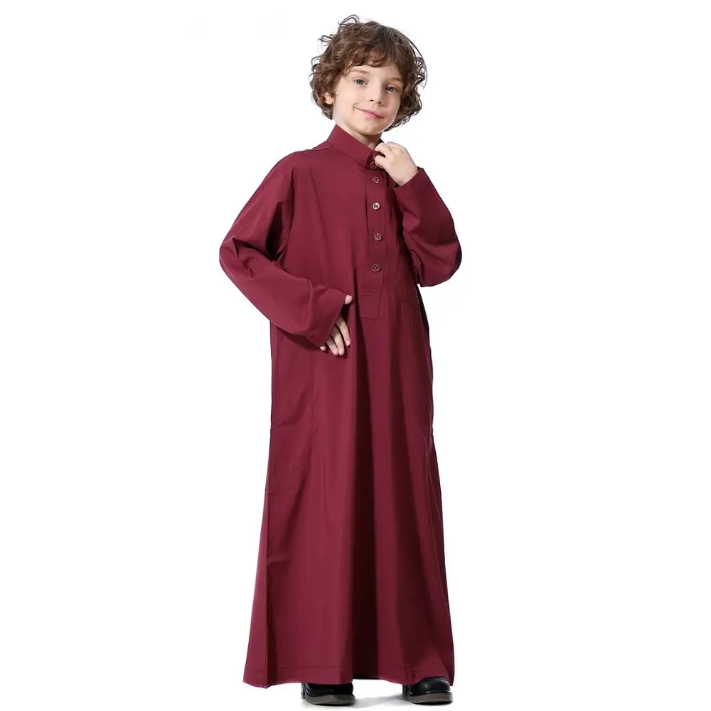 Мусульманская детская Абая Рамадан джубба табе длинное платье для мальчиков кафтан исламский халат стоячий воротник Кафтан Дубай Арабская служба поклонения