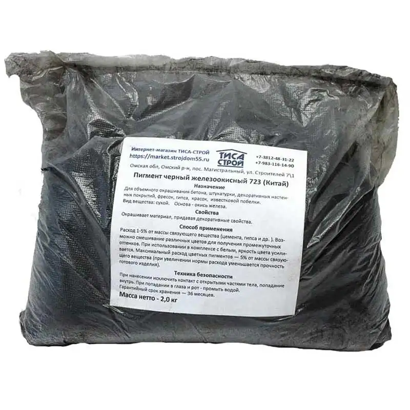 Пигмент S330 (S723) железооксидный черный (упаковка 2 кг ) для бетона, гипсовых растворов, штукатурки.