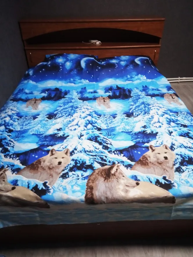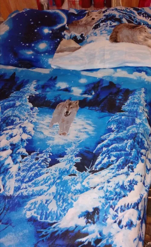 "волки" пришли только со второго раза, первый раз пришёл совершенно другой комплект белья. после общения с продавцом отправили заказ повторно со скидкой 500 рублей и обещали положить подарок, но его к сожалению не оказалось (( а теперь о белье: качество хорошее, после стирки не линяет.