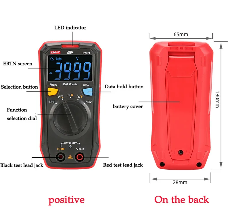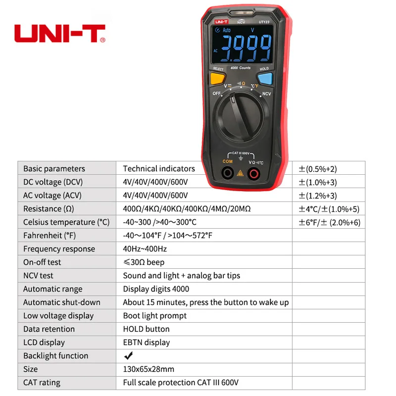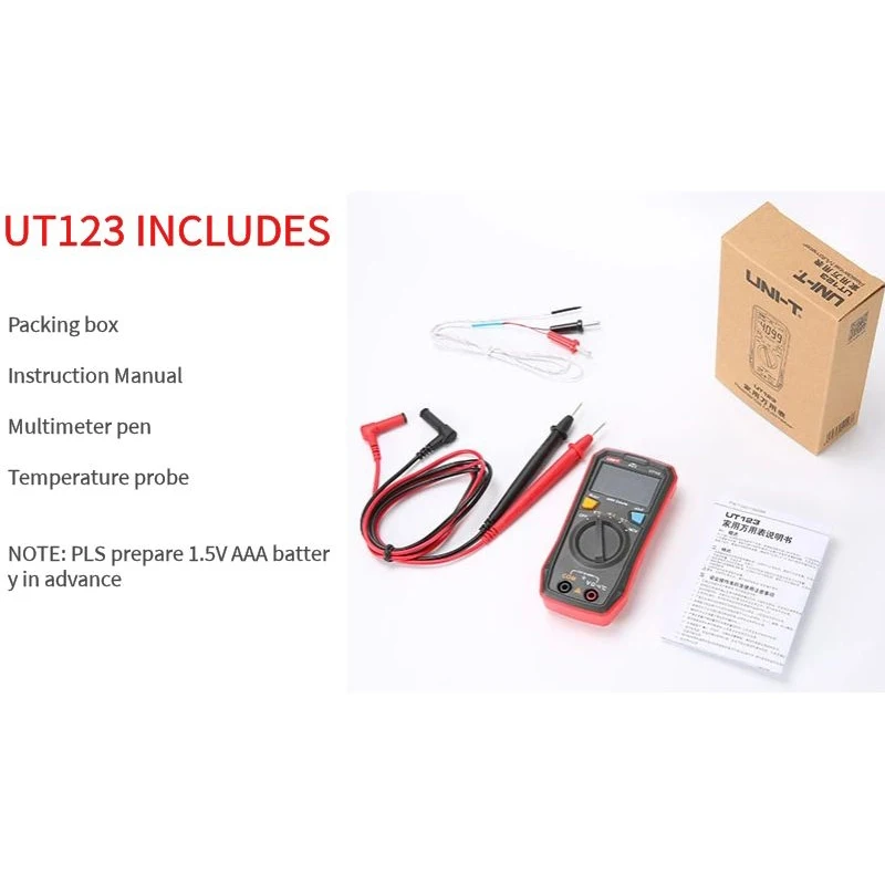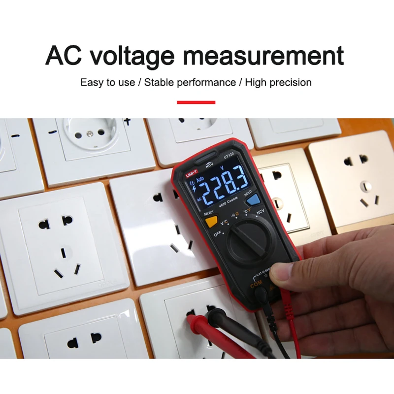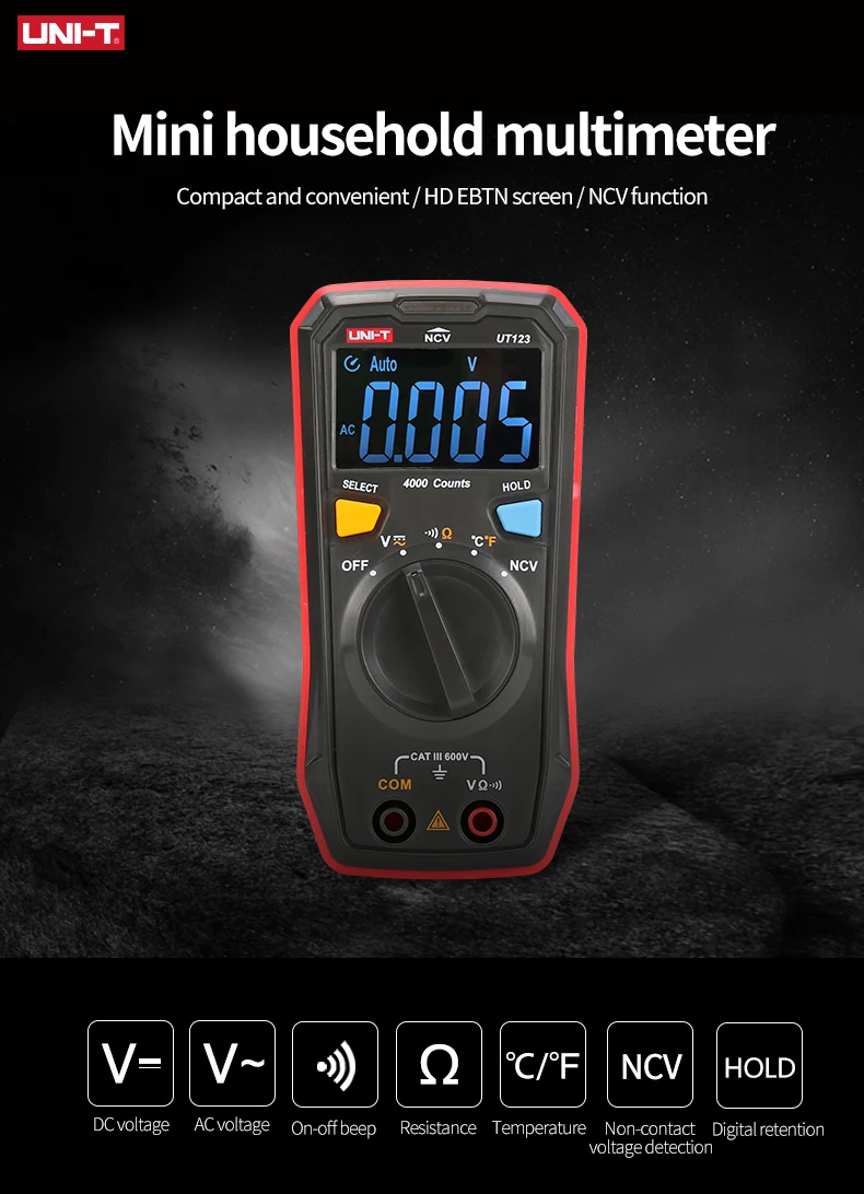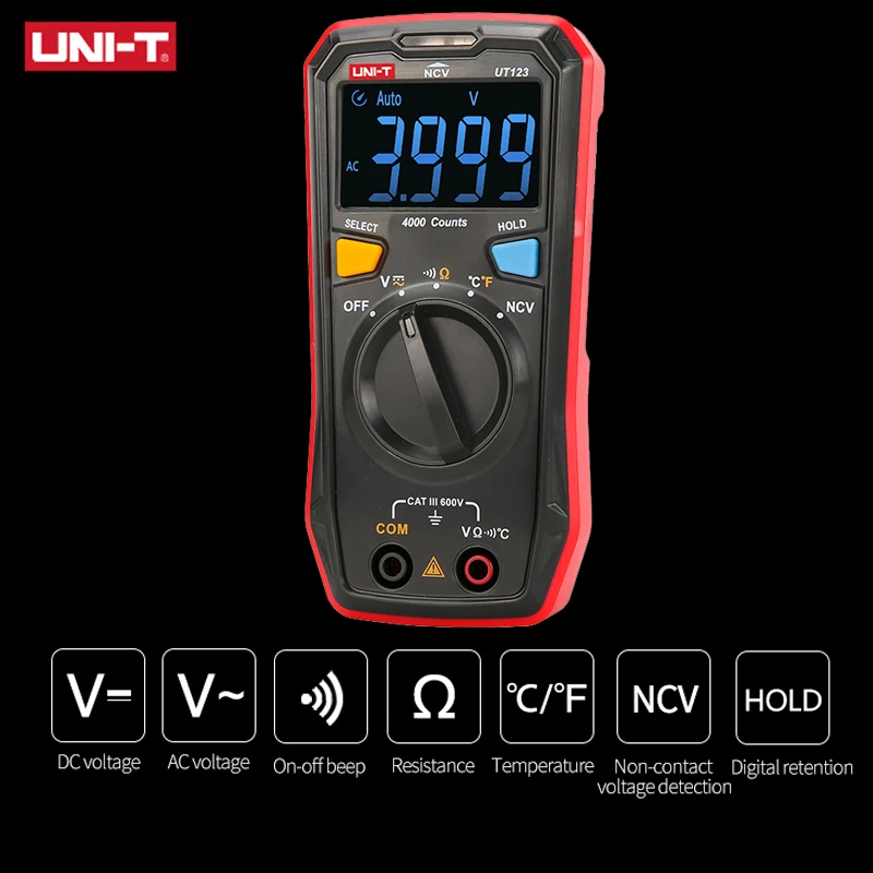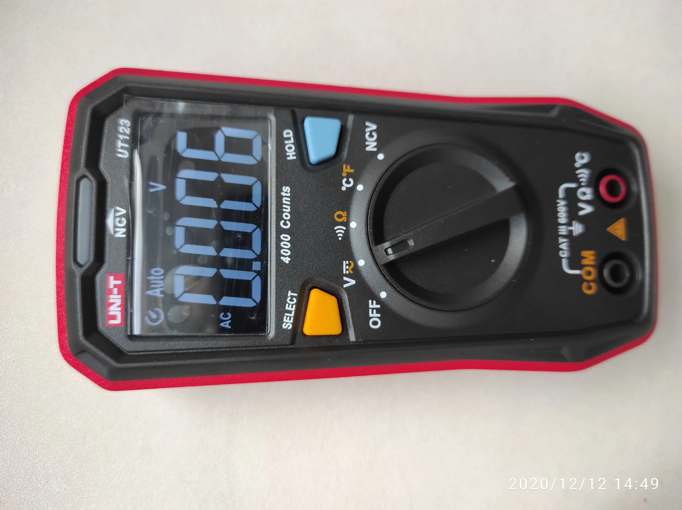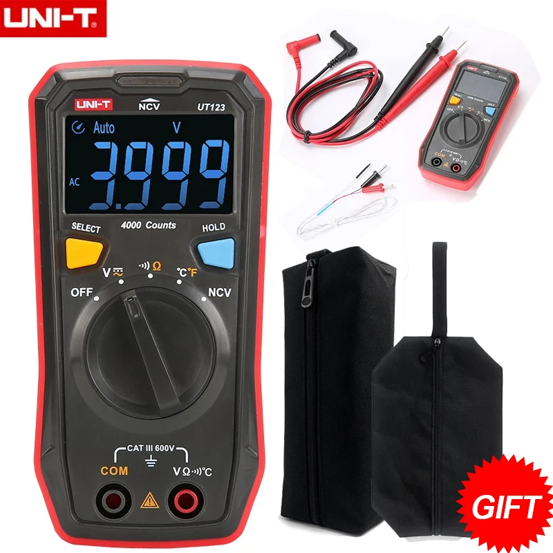 Мультиметр UT123, UNI-T, компактный, портативный, цифровой, бытовой, карманный, Многофункциональный тестер, AC DC резистор напряжения, Функция измерения температуры NCV