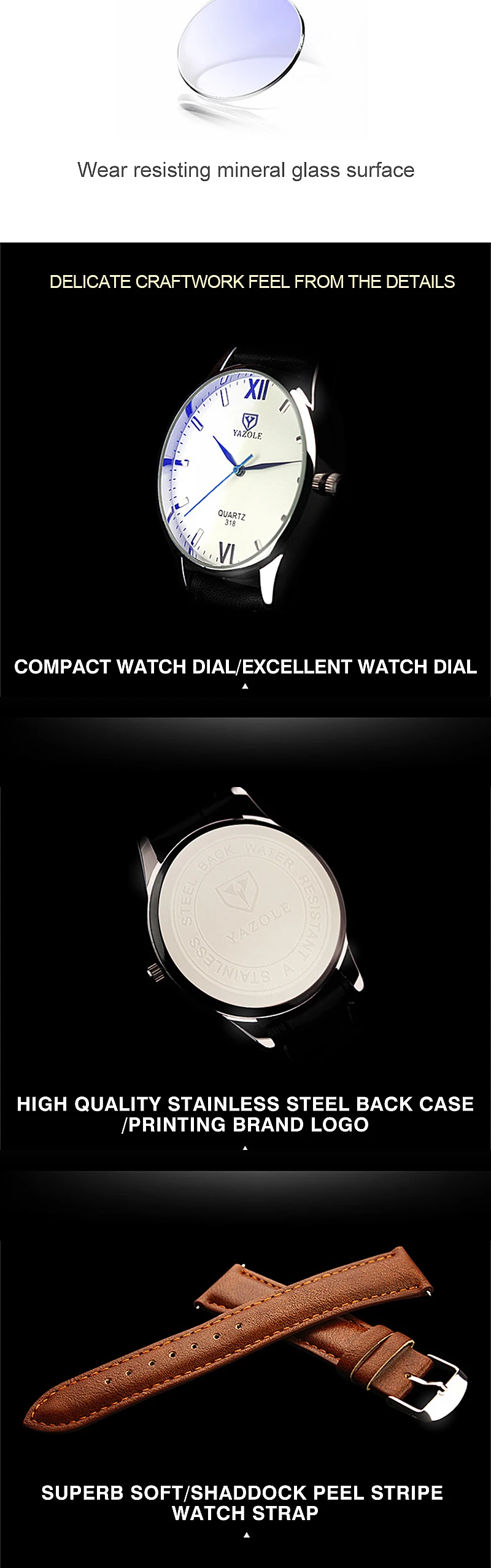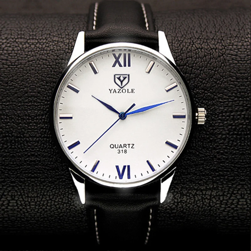 Мужские часы YAZOLE 318 с кожаным ремешком, водонепроницаемые кварц...