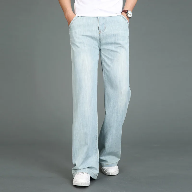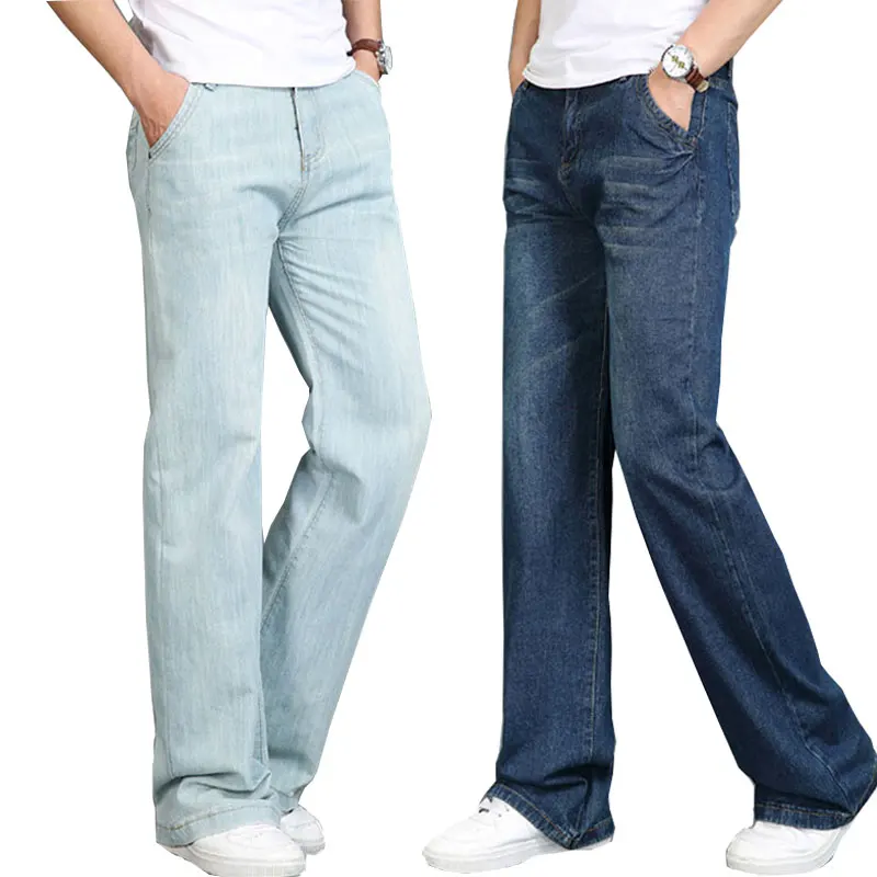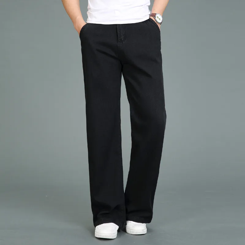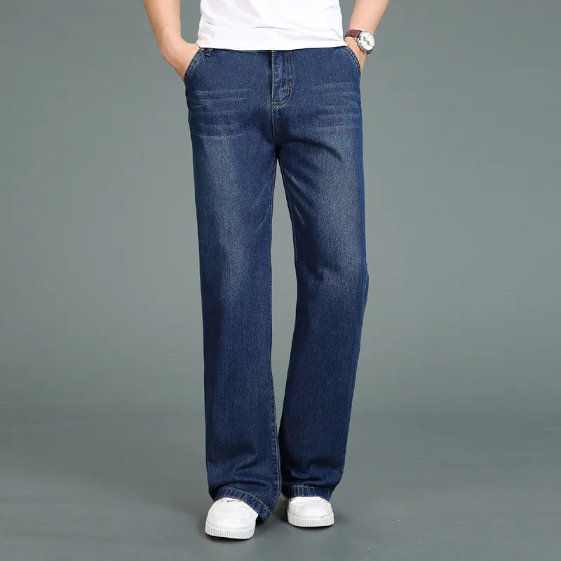 Джинсы мужские расклешенные, прямые брюки с широкими штанинами, свободные штаны, большие размеры 27-35