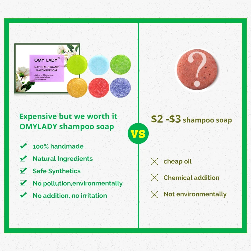 Почему мы должны выбрать бренд OMYLADY? Надежный выбор ингредиентов-отличная среда обитания растений, погода, это как весна круглый год Отсутствие загрязнения: после 24 часов контакта с водой пенка мыла ручной работы «OMY LADY» будет разложена на воду и углекислый газ бактериями, что не вызовет загрязнения воды. Низкая Температура ручной работы: Сделано в руке с 45 ℃, сохраняет простоту и естественные характеристики растительных материалов, уменьшает потерю питательных веществ, И интегрирует искусство милой леди в простую жизнь.