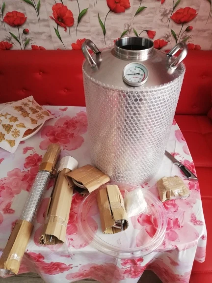 качество отличное, все приехало целое, термометры работают, верхний термометр электронный, вставляется в спец трубку. в комплекте шланг силиконовый 9мм 2метра, прокладки на клампы, и сами зажимы. холодильник, и царга, но без какого либо наполнителя, просто труба. Единственный минус- это прокладка на куб резиновая, пришлось купить пластину силикона и вырезать свою прокладку, так как в нашем городе в магазинах таких прокладок диаметра 100мм нет в наличии. порадовала скид