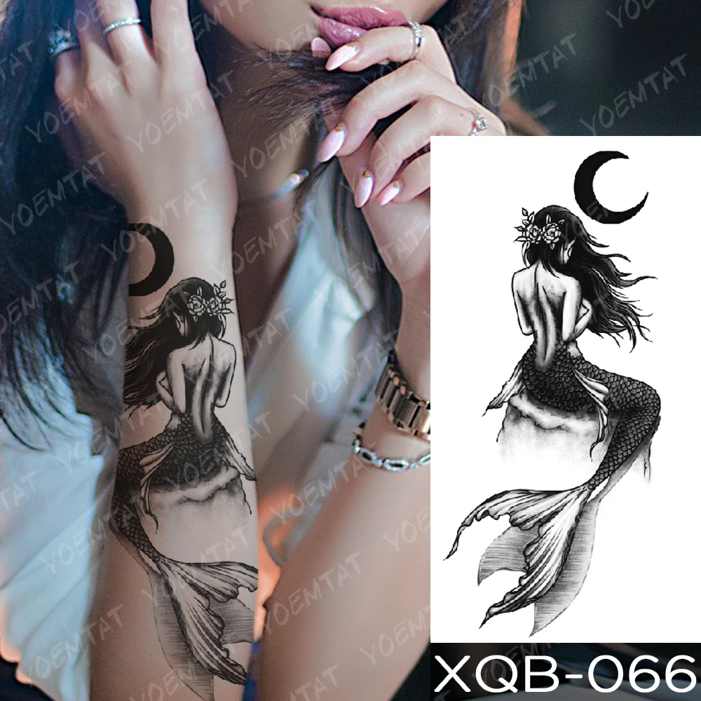 Водостойкая Временная наклейка для татуировок с Луной, морем, русалочкой, вспышками, цветами, черепом, мандалой, боди-артом, фальшивые татуировки для мужчин и женщин