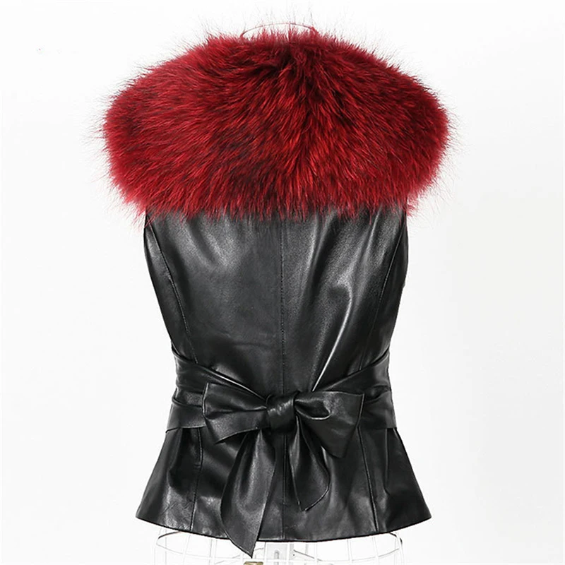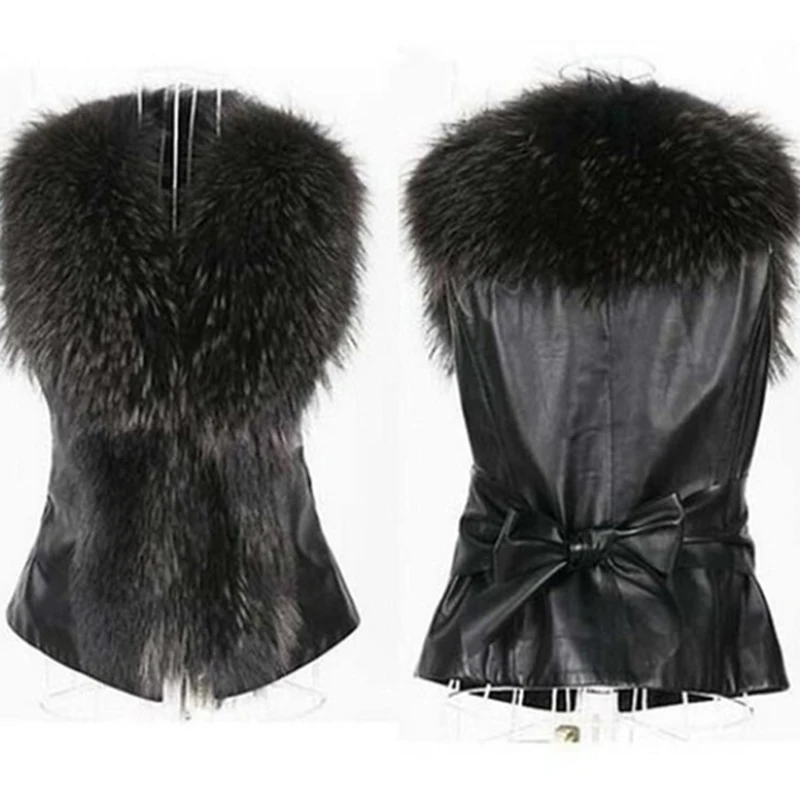 Женский жилет из ПУ кожи, без рукавов, с воротником из искусственного лисьего меха