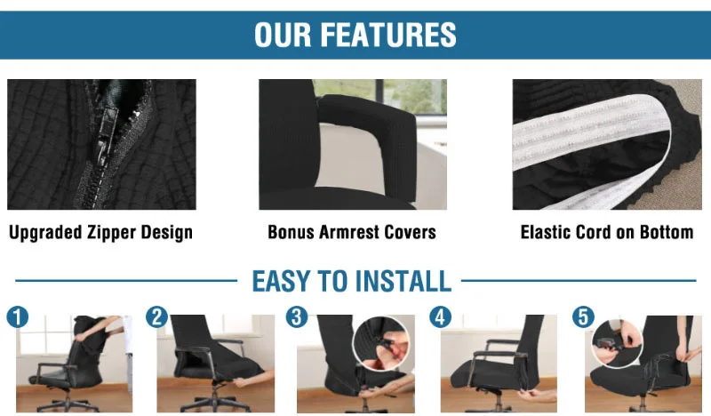 Съемный чехол для офисного кресла, Размеры ML, современный спандекс, чехол на компьютерное кресло, 100%, из полиэстера и эластичной ткани, легко стирается