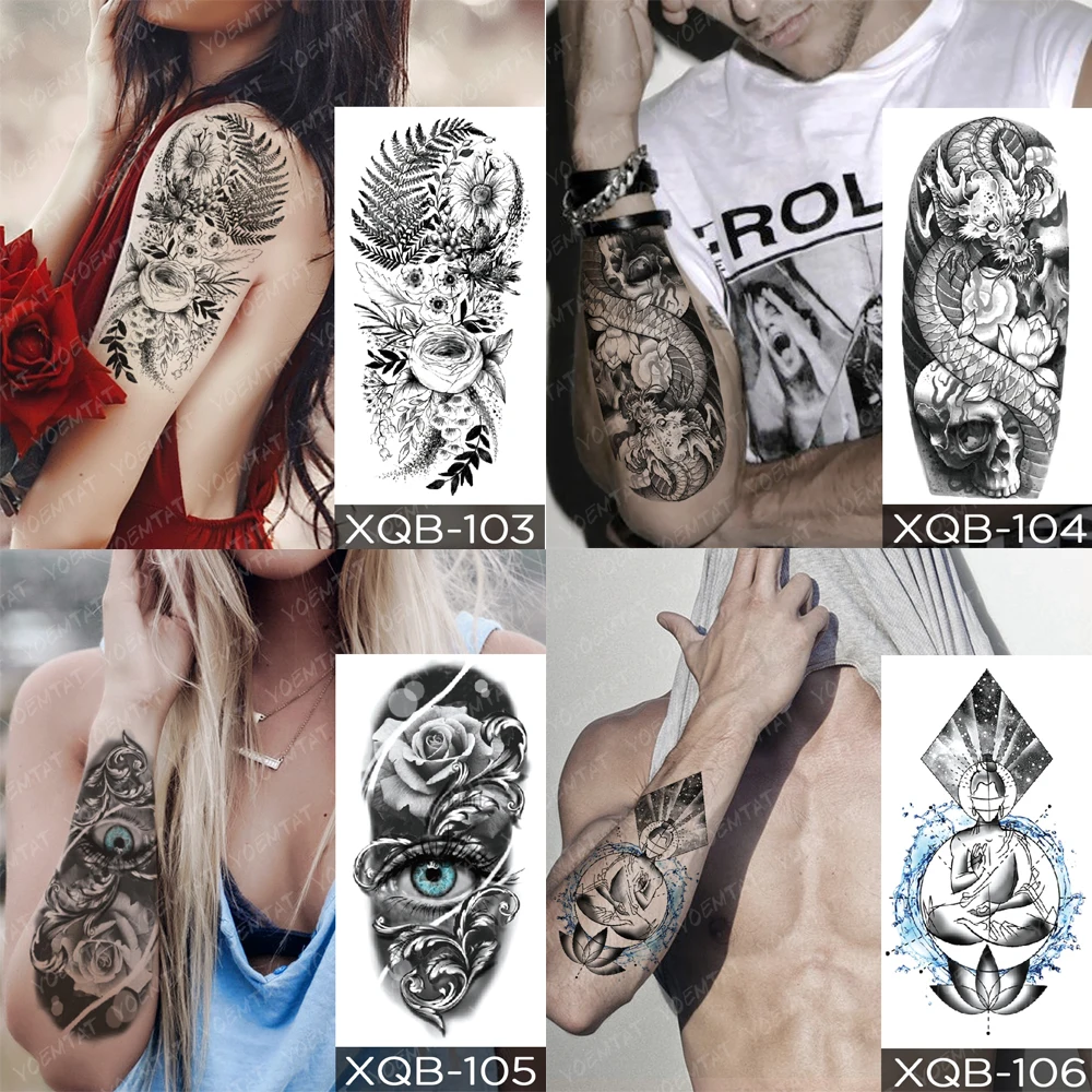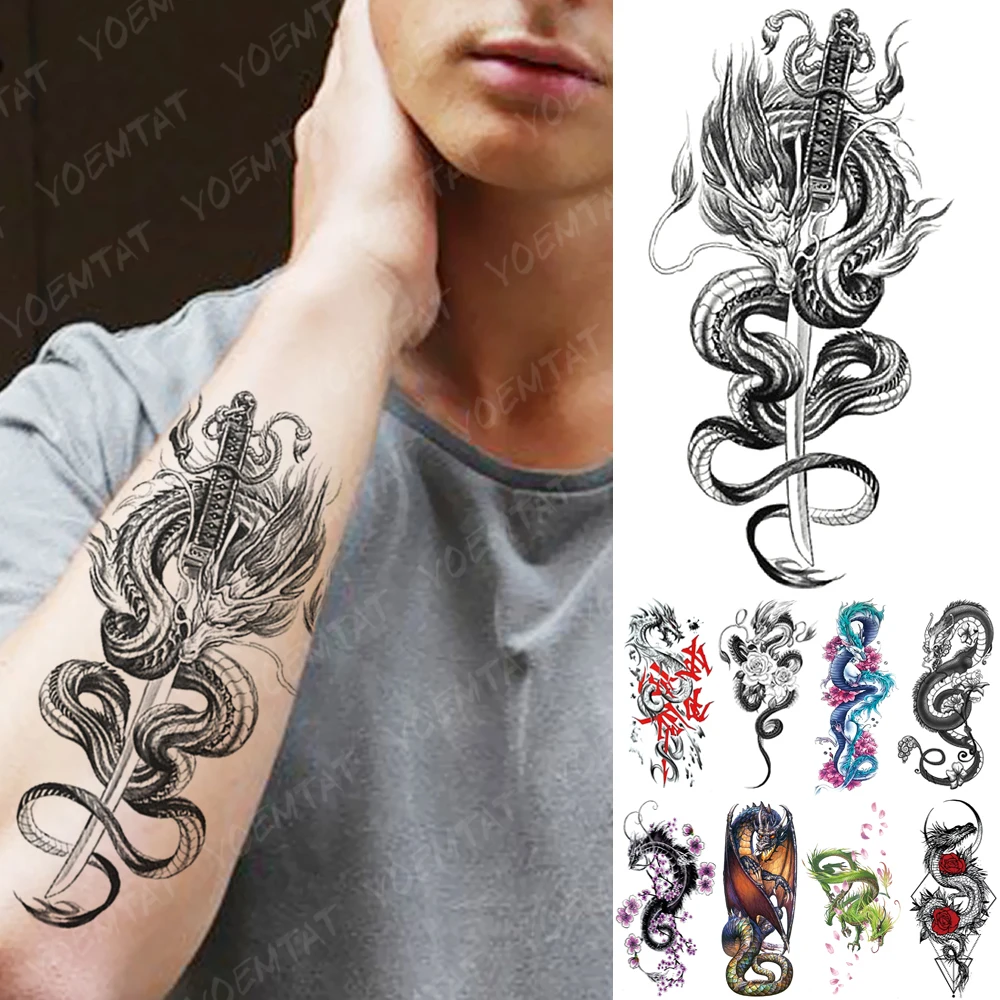 Водостойкая временная татуировка, наклейка, дракон, меч, змея, флэш-татуировки, роза, Сова, волк, боди-арт, рука, имитация рукава, тату для женщин и мужчин