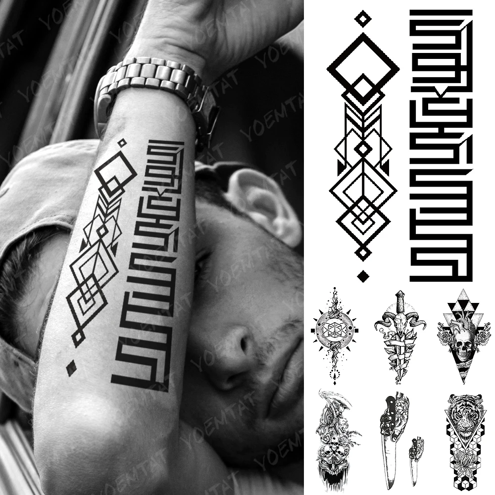 Водонепроницаемая Временная тату-Наклейка Черная Квадратная тотемная вспышка тату Тигр стерео тотемный боди арт рука поддельные тату для женщин и мужчин