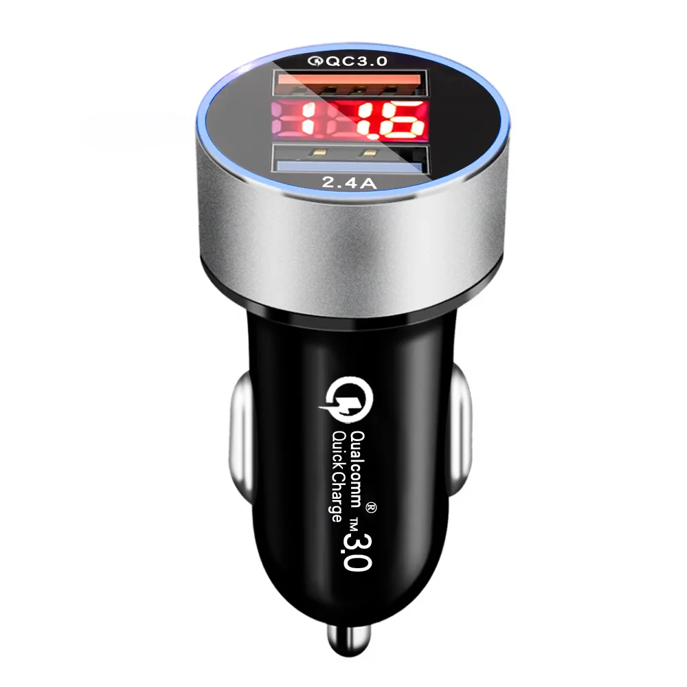 Универсальное автомобильное зарядное устройство с двумя USB-портами 3,0 А и цифровым дисплеем