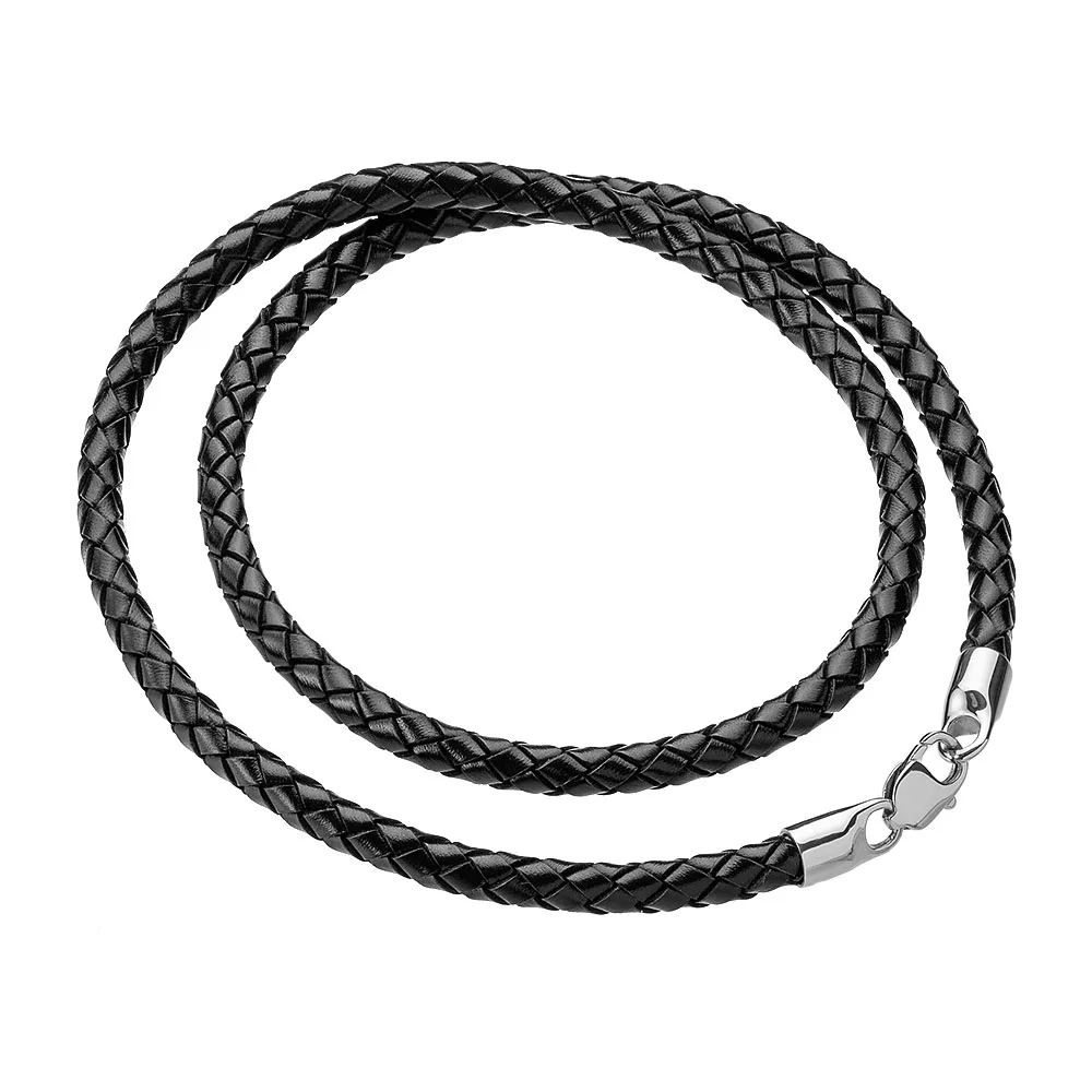 Шнурок кожаный плетеный, цвет черный, Серебро 925 пробы, натуральна...