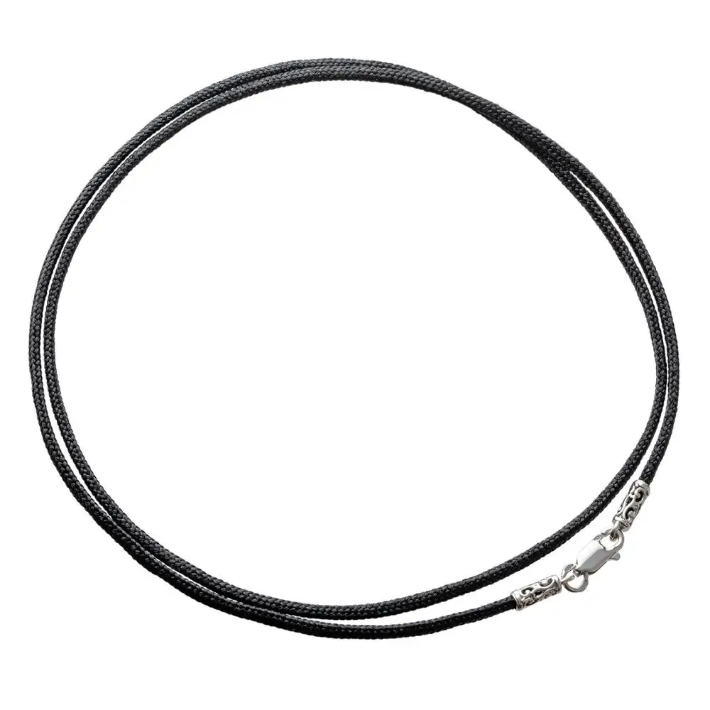 Шнурок Шелк Плетёный , цвет Черный , серебро 925, толщина 2 мм, RUFINA