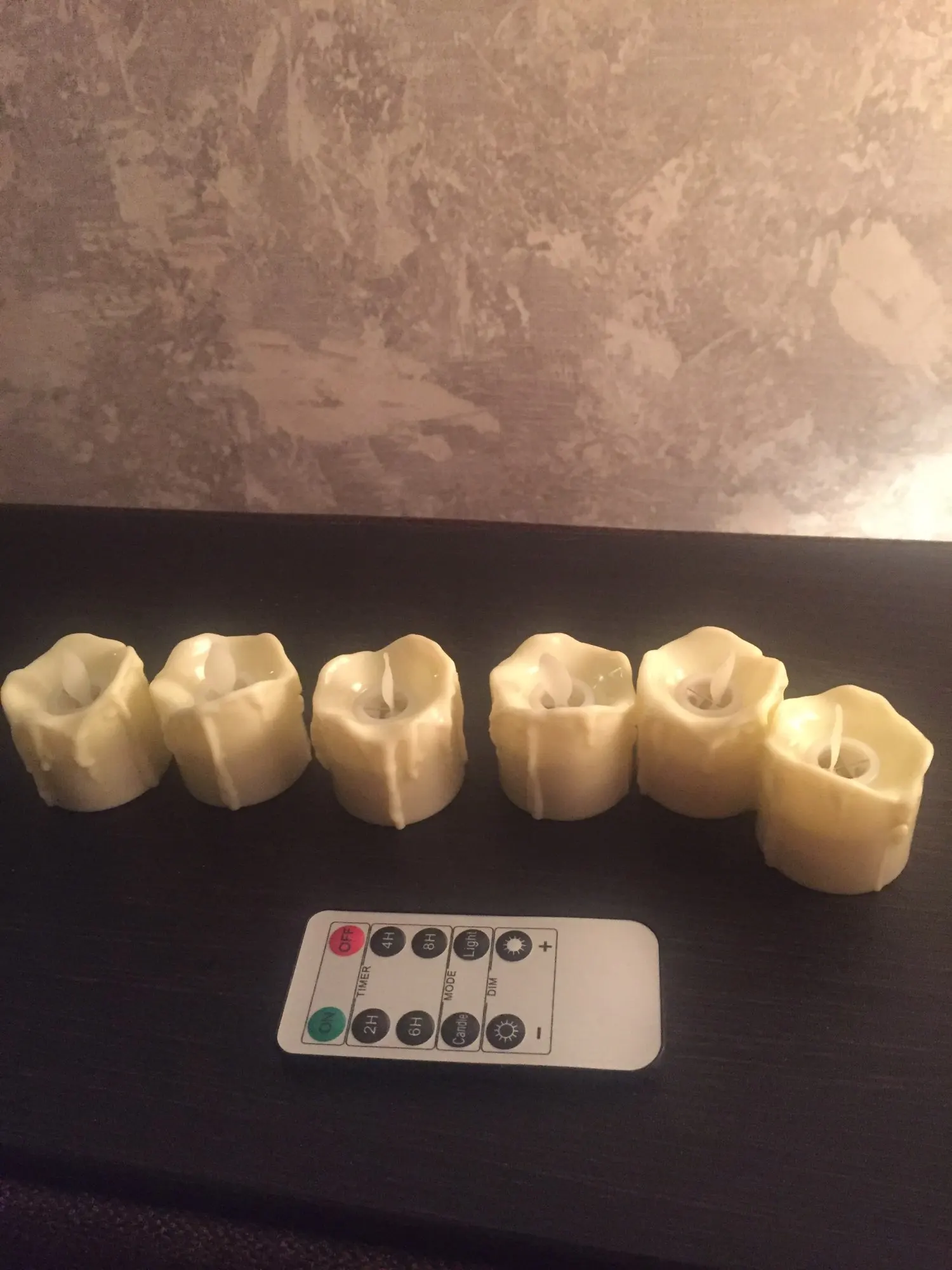 Они фантастические! Точно. Именно то, что я хотел-у них есть Реалистичная, Мерцающая Свеча «пламя», похожая на очень дорогие свечи Mirage. Я очень рад. Пульт дистанционного управления включает или выключает все шесть чайных свечей одним щелчком.