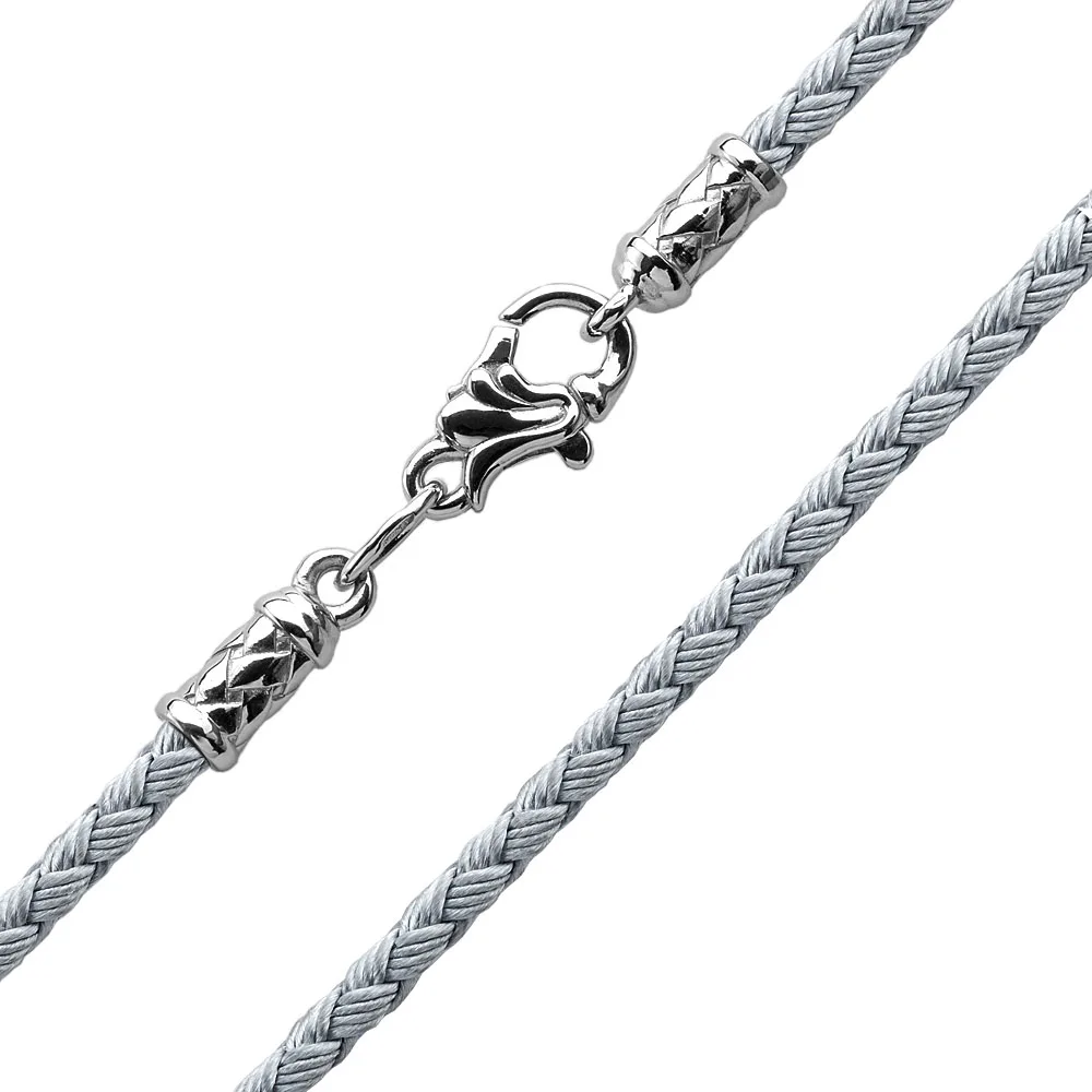 Шнурок текстильный, Серого цвета, с серебреным замком 925* пробы, т...