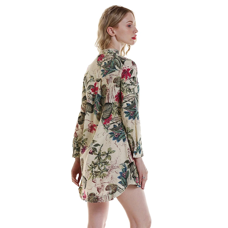 2019 женское платье-рубашка с цветочным принтом, плиссированные Женские повседневные платья в стиле ретро, vestidos mujer ropa mujer