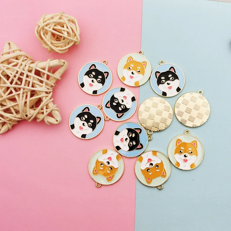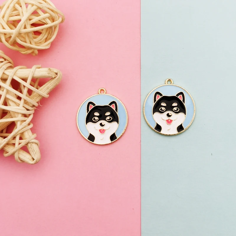 10 шт.упак. Собака Хаски Эмаль Подвески Круглый дизайн подвески для серьги для изготовления ювелирных изделий браслет с плавающей Золотой база 26*28 мм