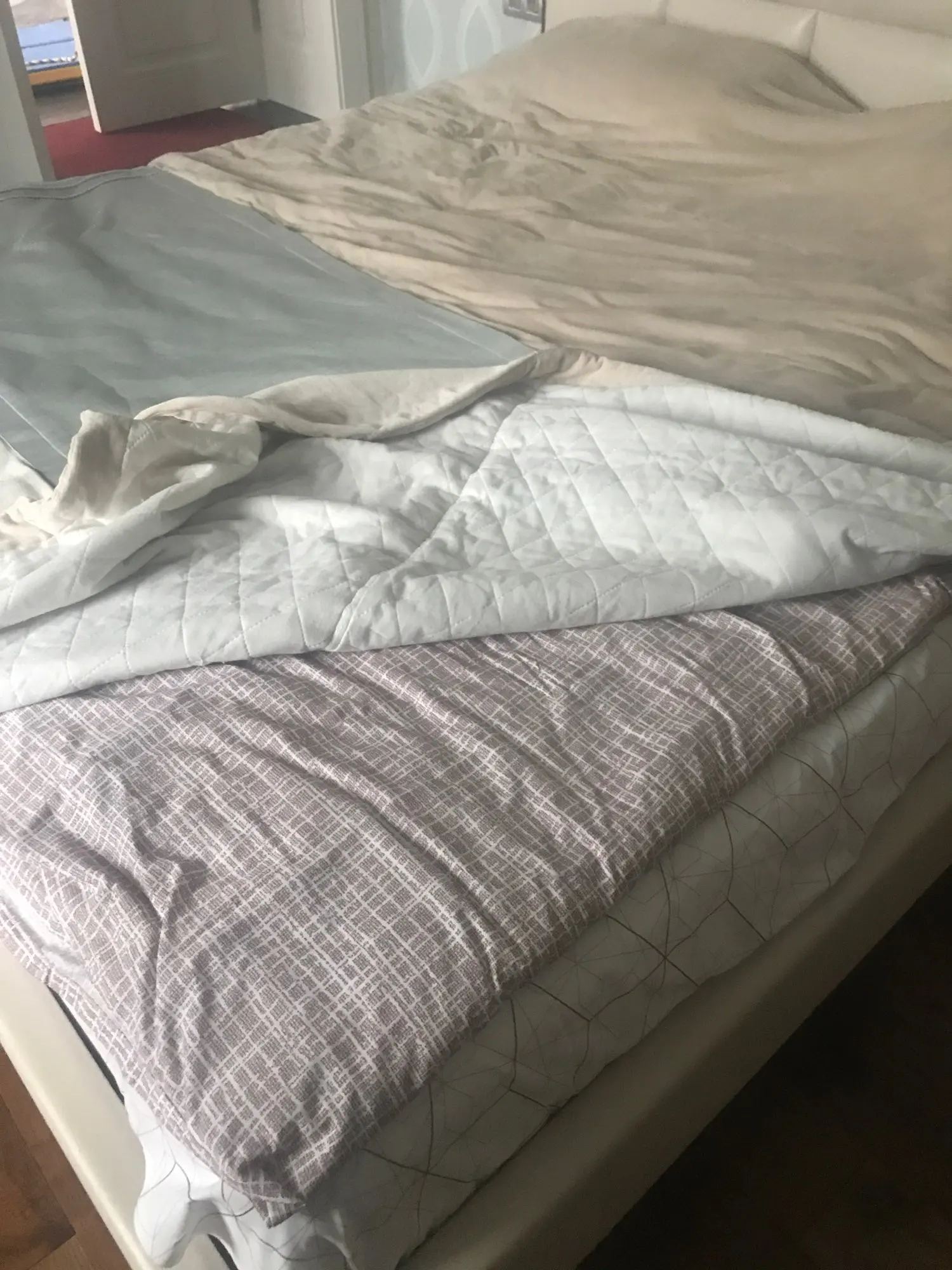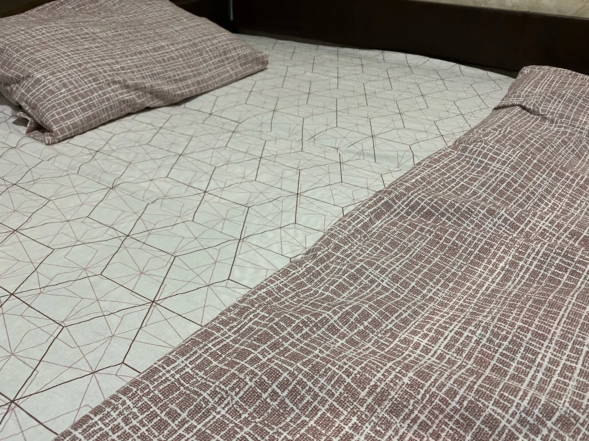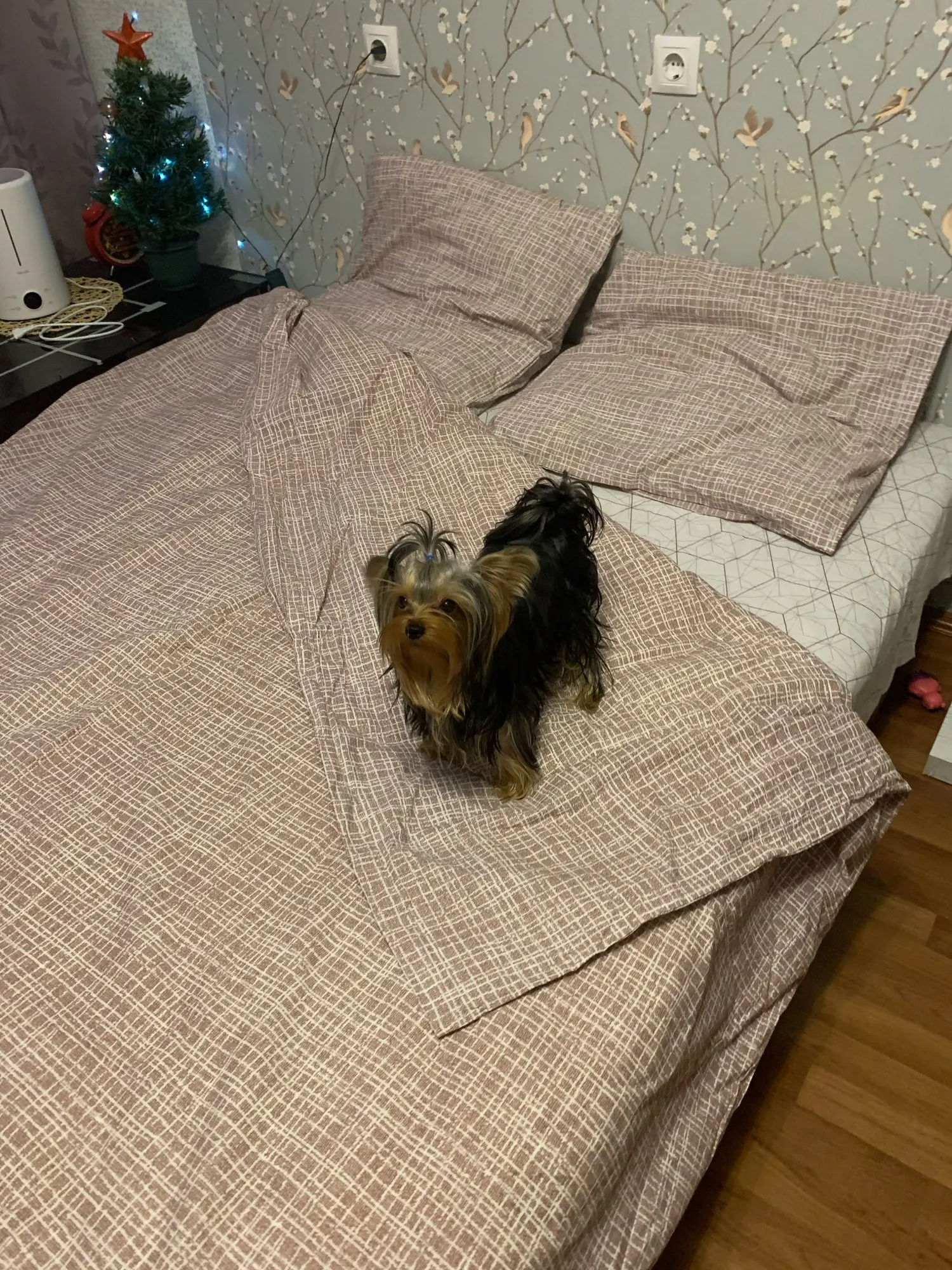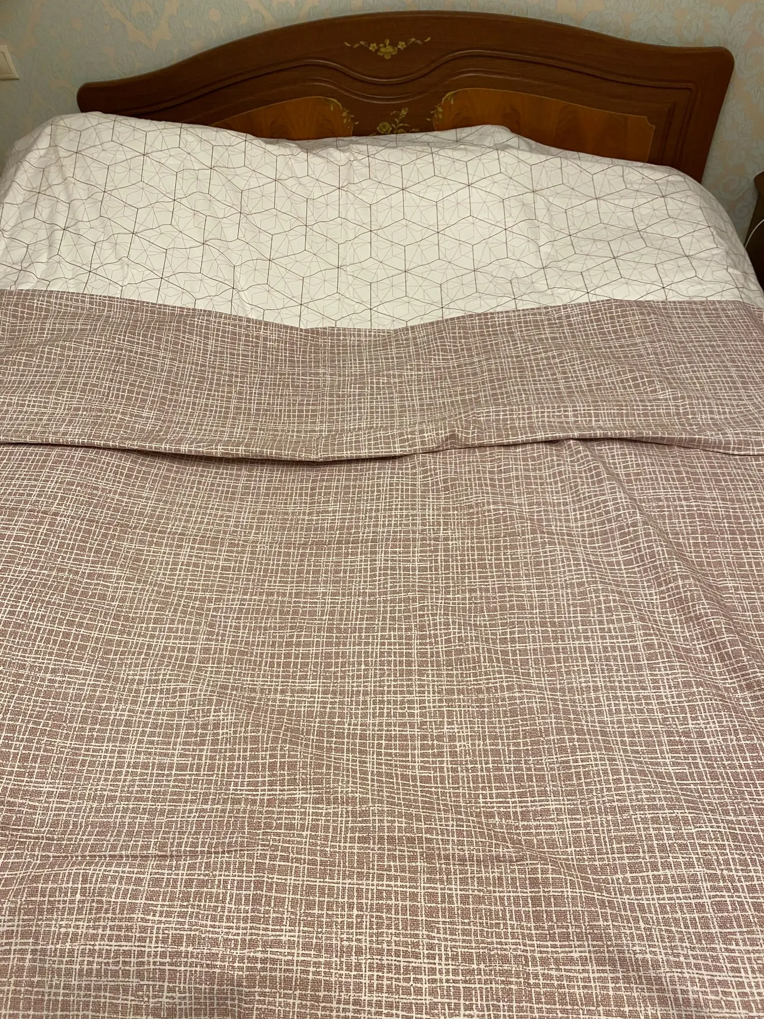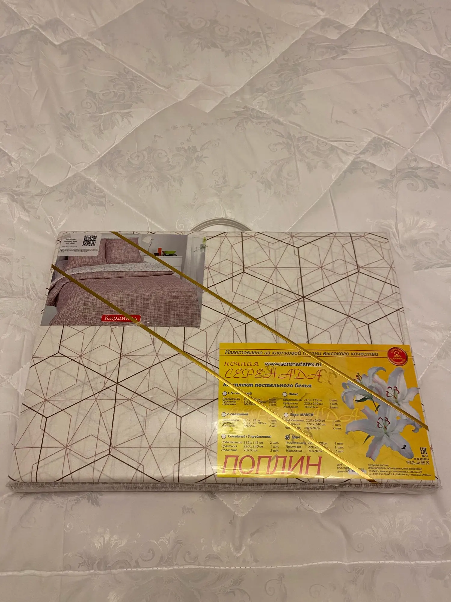 Купила за 2470. Пришёл заказ довольно быстро (чуть больше недели в МО). Хлопок 100% плотный. Сразу постирала с кондиционером, но то ли сильно накрахмалено белье, то ли настолько плотный хлопок. Поймем после следующей стирки. Когда легли спать, показалось слишком жёстким и некомфортным. В итоге оказалось безумно комфортным, сон стал лучше. В общем восторг и точно закажем ещё. Внешний вид тоже по началу показался слишком простым, а когда застелили, то оказалось гармоничто. Всем рекомендую. На фото подушка для беременных отдельно от комплекта, как и кот))