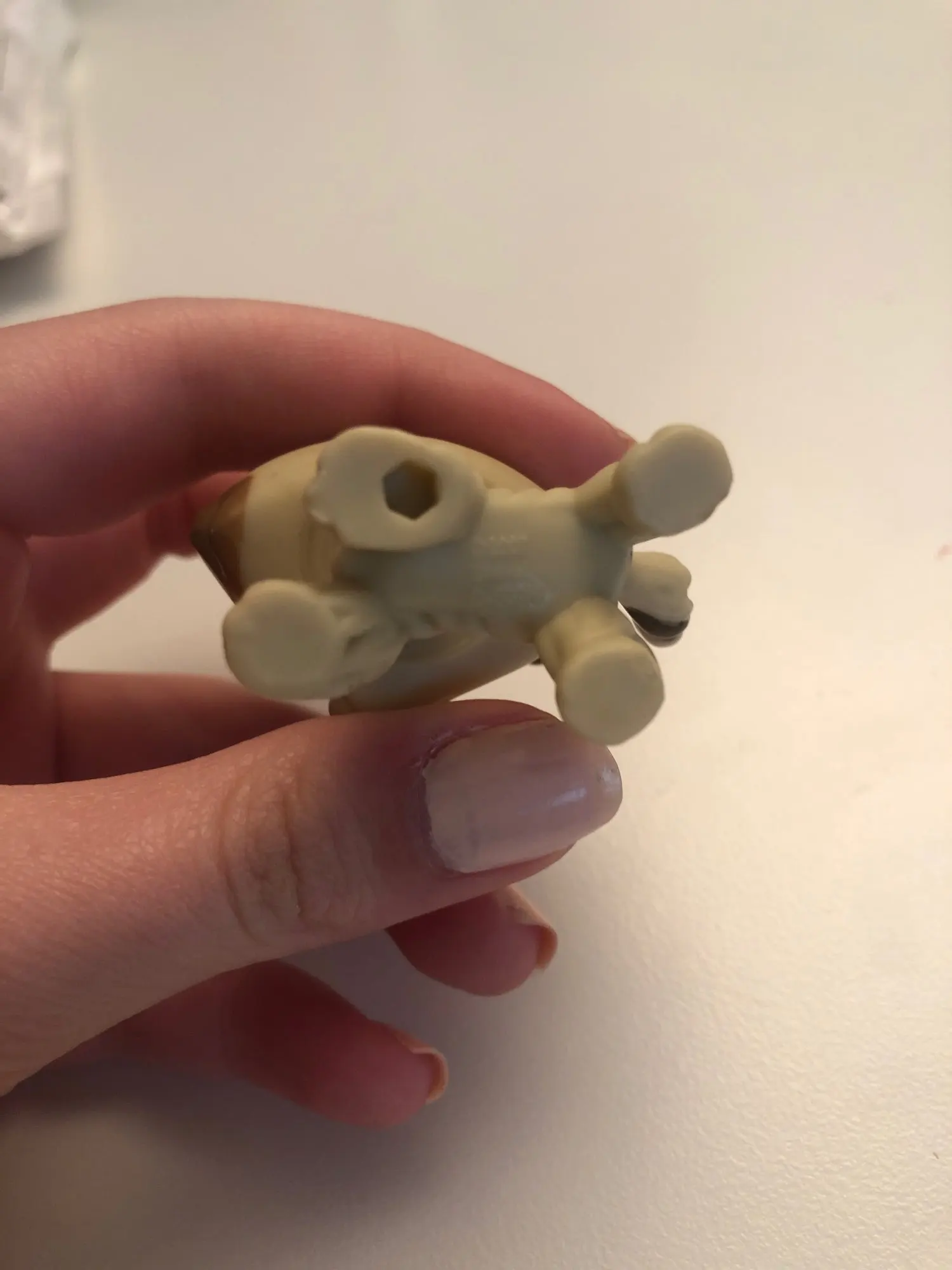 Игрушка пришла целая,немного пахла. В целом, все отлично, приехала меньше,чем за месяц