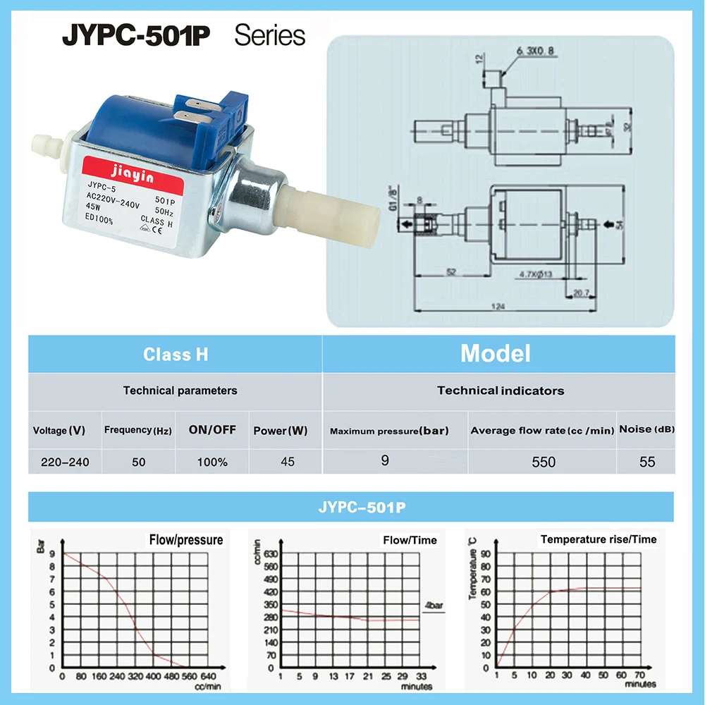 Самовсасывающий насос для кофемашины Jiayin, JYPC-5-220 В переменного тока, 9 бар, 45 Вт, электромагнитный, 240