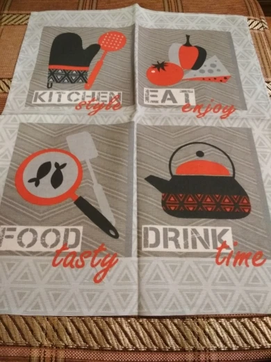Достаточно быстрая доставка. Очень надёжная упаковка, точно защитит от воды. Тактильно материал приятный и похоже на 100% хлопок. По качеству пошива пока не скажу, не доставали полностью. Продавцу спасибо за 3 кухонных полотенца в подарок, ну очень приятно и симпатично.