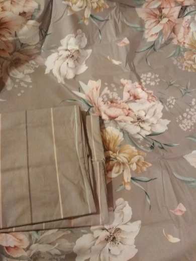 Качество хорошее, спать приятно. На фотографии у пододеяльника с одной стороны расцветка ткани как у простыни и наволочек, по факту с 2-х сторон цветочки. Из-за этого белье не выглядит комплектом. Нужно информировать об этом.