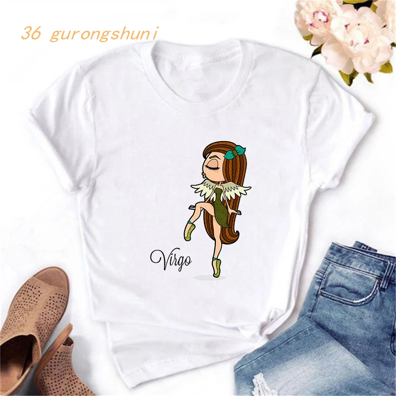 Футболка Cacer, топы с графическим рисунком, футболка с созвездиями, Лев, гот, топы, женская одежда 2020, рубашки в стиле Харадзюку, футболки с принтом Девы, коровы