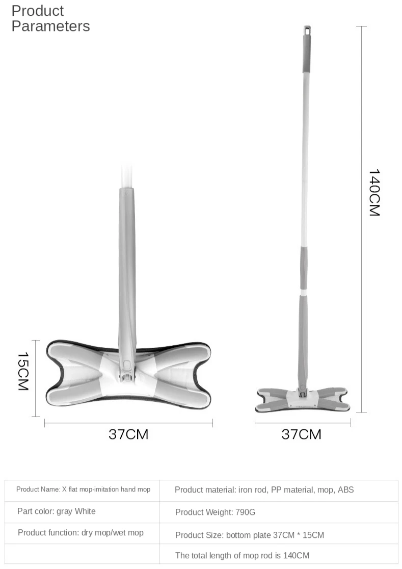 Плоская швабра для пола X-типа. Моющая головка, не требующая ручног...