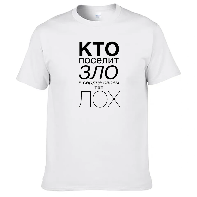 Мужская футболка из 100% хлопка с русским "кто поселит зло в сердце своём тот лох" вдохновением и принтом сленга, модные повседневные футболки унисекс, топы, женские футболки с текстовым принтом