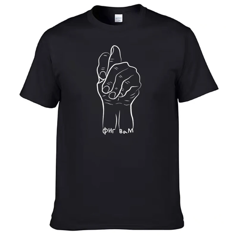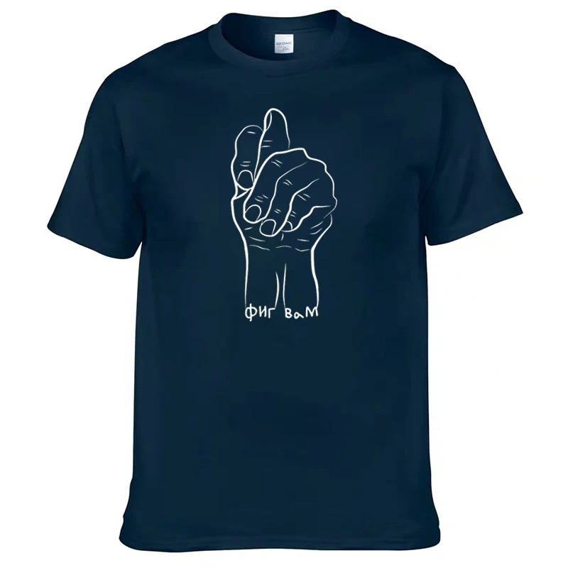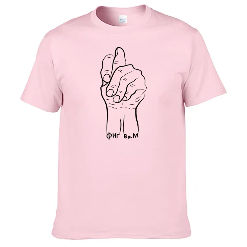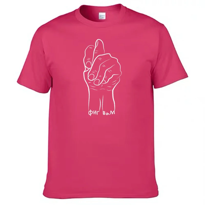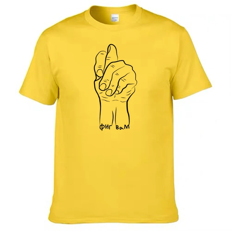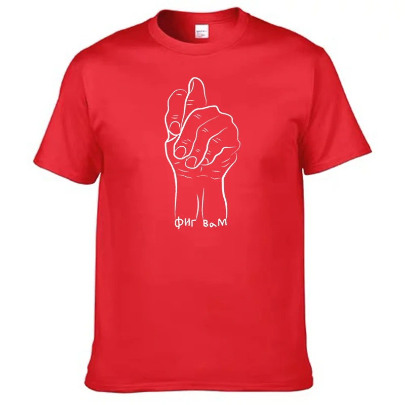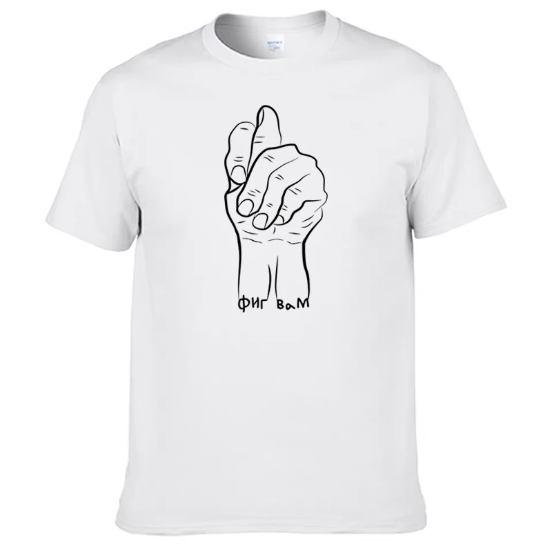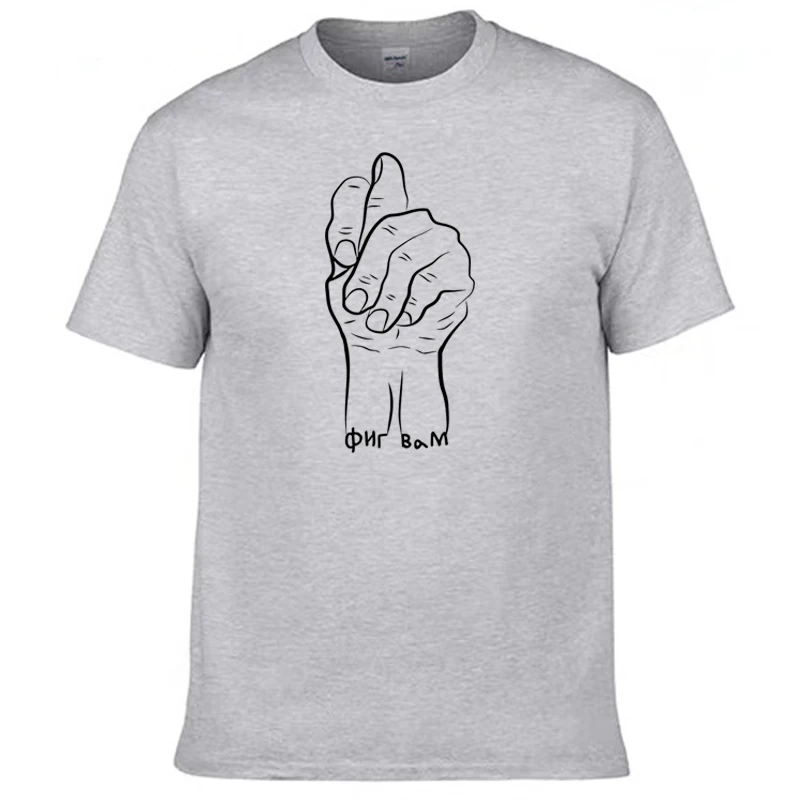 Мужская футболка Spoof Забавный русский жест рукой Figa с русским языком Слоган Фиг Вам 100% Хлопок Футболки Мужская мода Фиг Вам Футболки