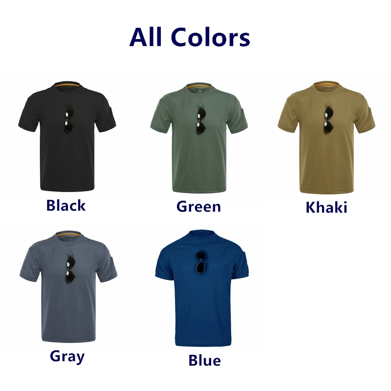 Параметры : Тип изделия : Для мужчин футболка Цвет : Черный, синий, серый, зеленый, хаки Применение : Кемпинг, походы, бегИ занятий спортом Стиль : Спорт, на открытом воздухе Материал : Полиэстер
