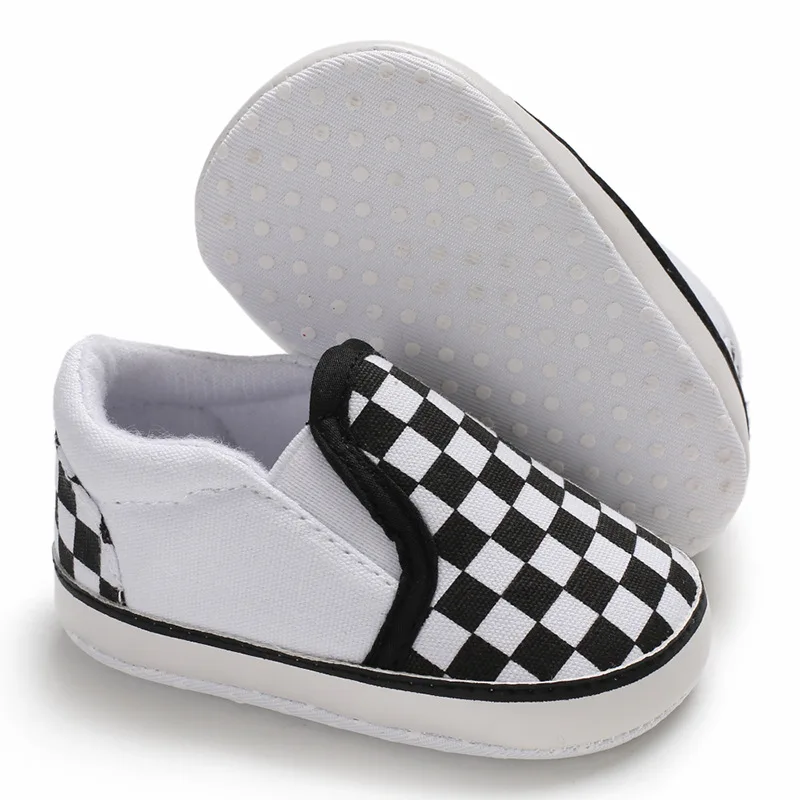 Детские туфли в клетку, для мальчиков от 0 до 18 месяцев, удобные, с мягкой подошвой, модные, классические, из парусины в клетку, прогулочные туфли для детей ясельного возраста