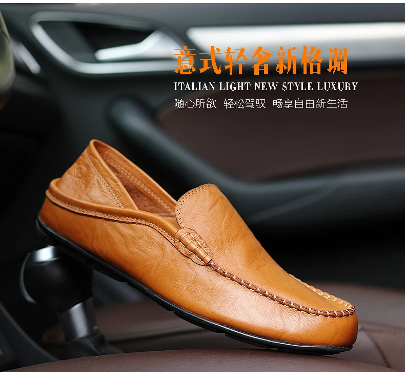 Мужские Кожаные Мокасины, легкая повседневная обувь для вождения, 2020