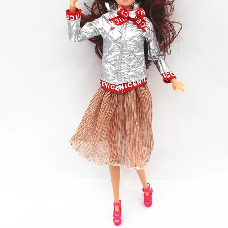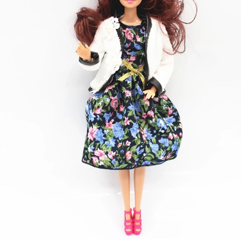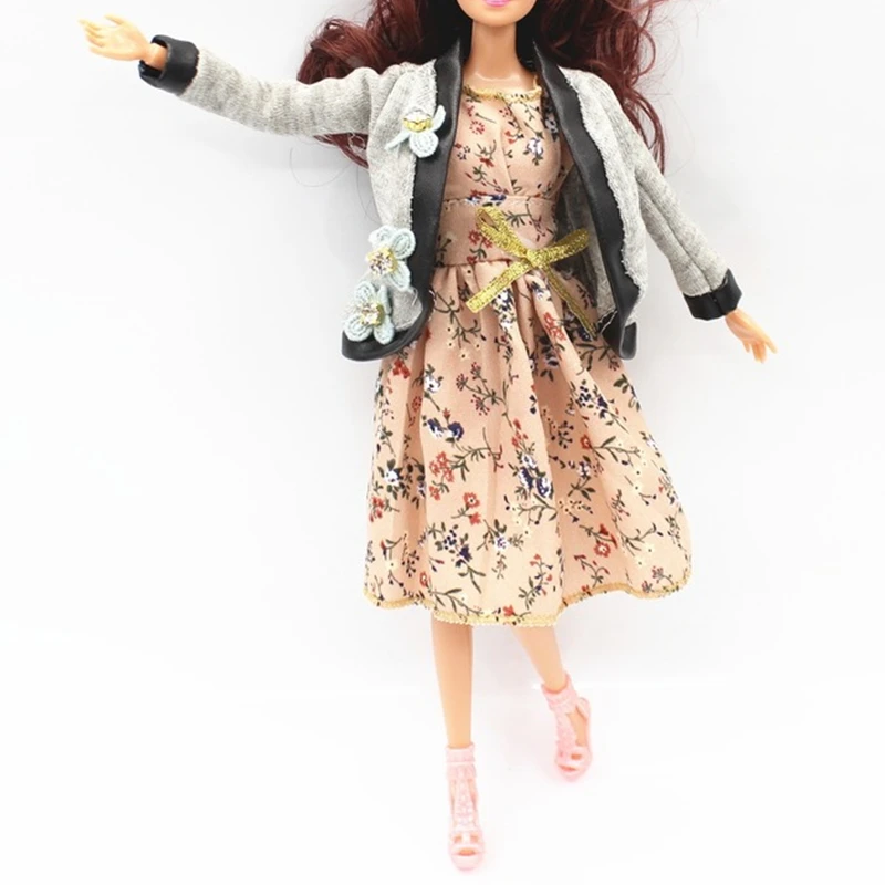 1 комплект, модная одежда для кукол, многоцветный наряд, куртка, платье с принтом, повседневная одежда, аксессуары, Одежда для кукол 30 см, подарок для девочки